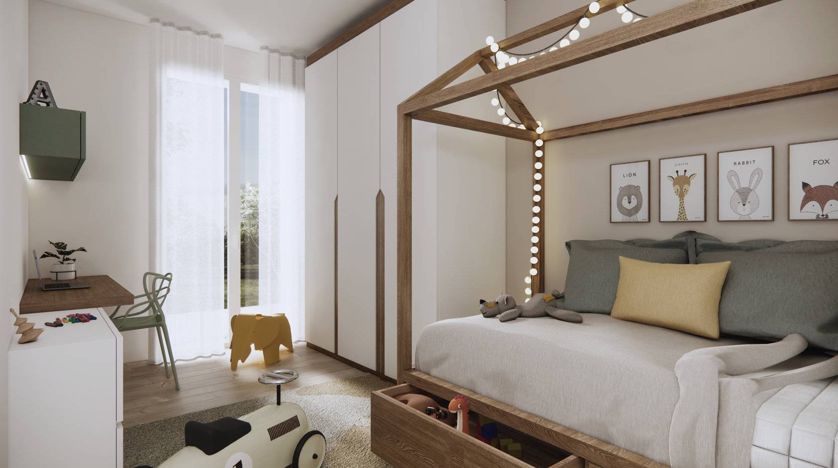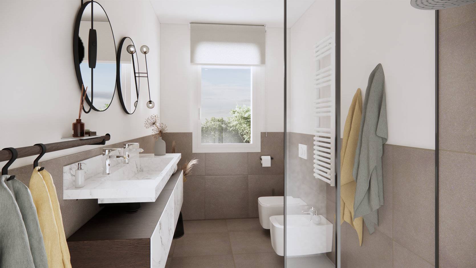 L'immobile composto da soggiorno con angolo cottura e terrazzo abitabile, disimpegno notte al servizio di due camere da letto di cui una matrimonilae con terrazzo ed una singola e due bagni entrambi finestrati.