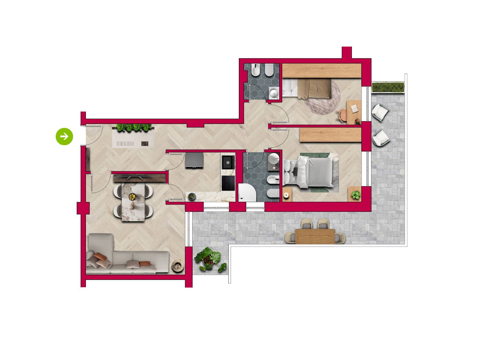 Appena fuori mura al terzo e ultimo piano di un condominio immerso in un ampio giardino rivolto a sud ovest abbiamo in vendita un appartamento con due camere ,soggiorno e cucina separati un bagno e un servizio una terrazza che corre lungo tutto l'appartamento, servito da un garage al piano semiinterrato.