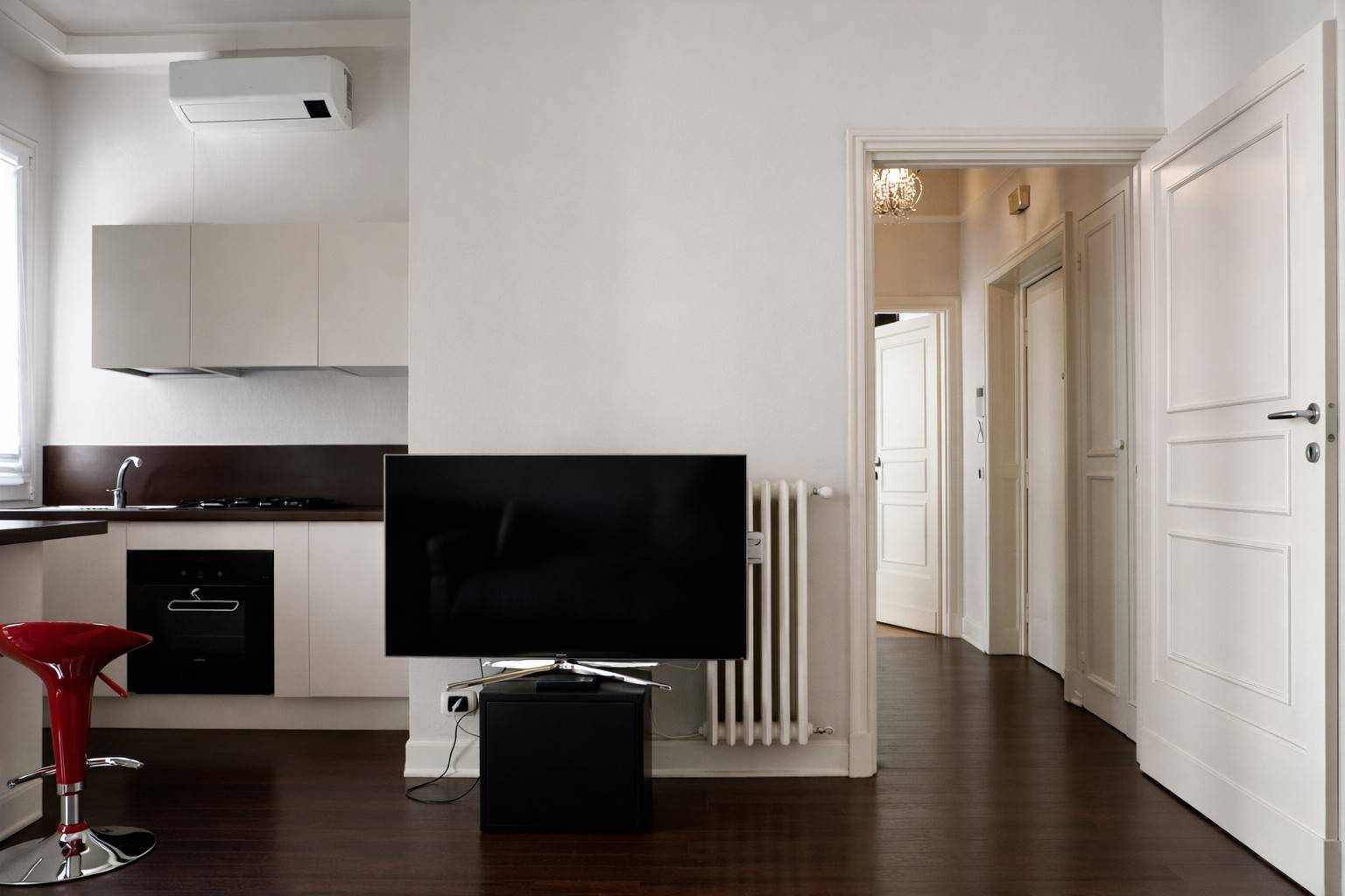 Elegante Bilocale Arredato con Balcone Corso Vercelli Nel cuore di una delle zone pi richieste e prestigiose di Milano, in Corso Vercelli, proponiamo in locazione un raffinato bilocale completamente arredato, situato al quarto piano di un elegante stabile depoca con servizio di portineria attivo mattina e pomeriggio.