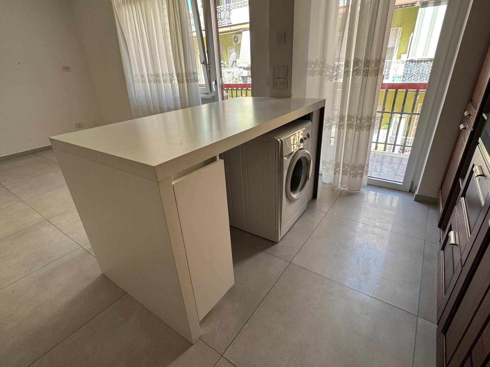 L'appartamento, di circa 75 metri quadrati complessivi e circa 70 metri quadrati calpestabili, composto da due locali: un salone con cucina a vista dotata di bancone snack, una grande camera da letto matrimoniale, nel corridoio un grande armadio a muro a tutta altezza risolve tante esigenze oltre a quelle di guardaroba, il bagno completo di tutti i sanitari e di una grande doccia doccia.