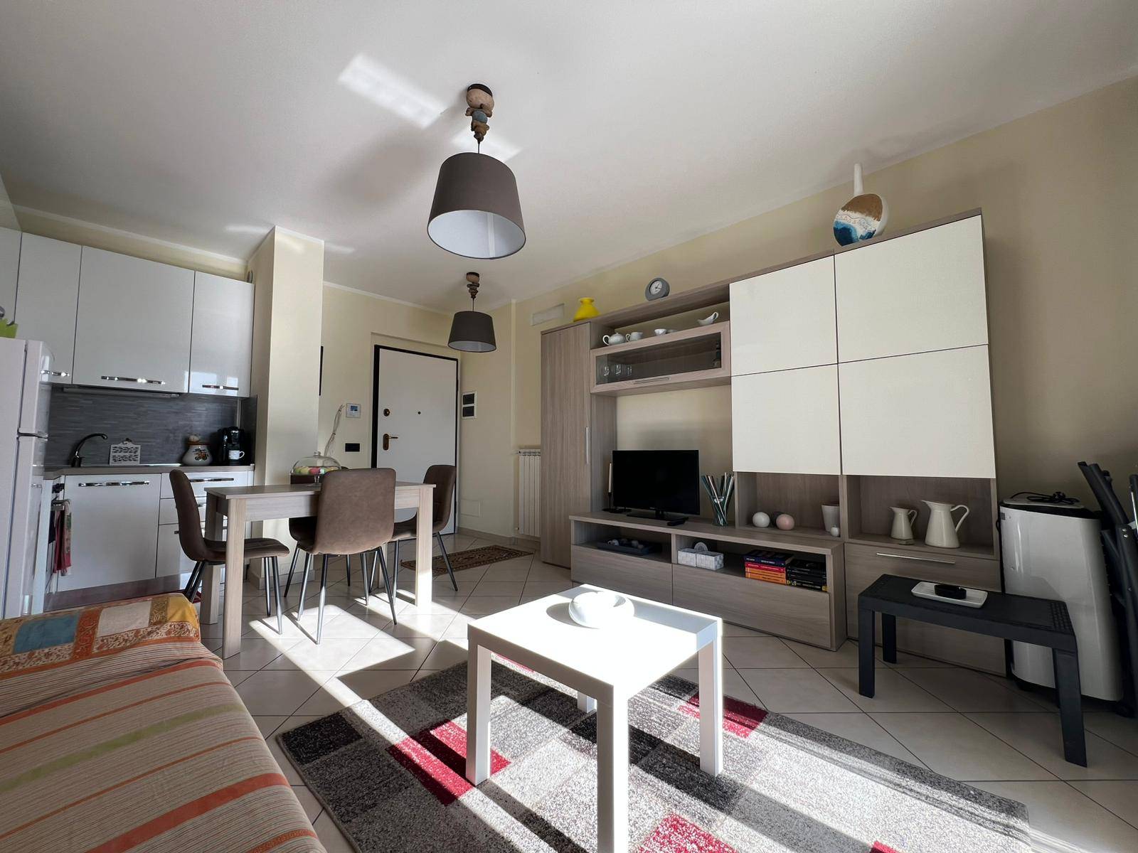 L'immobile si trova al primo piano con esposizione Sud. Internamente composto da ingresso su zona giorno avente sfogo sul balcone, cucina a vista, camera da letto matrimoniale e bagno con box doccia.