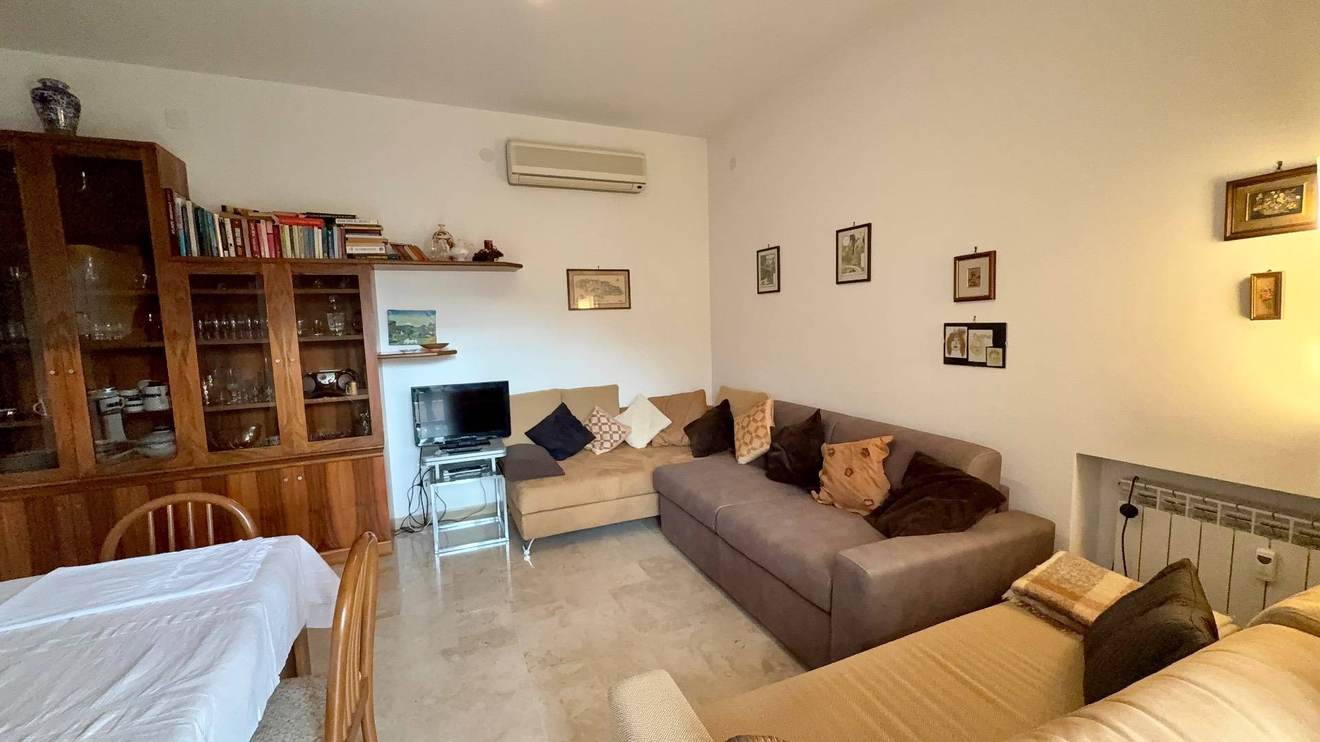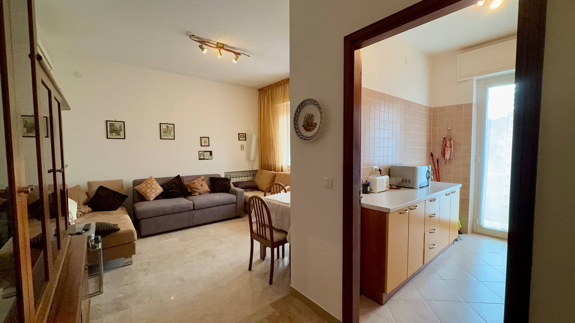L'appartamento composto da un soggiorno luminoso, cuore della casa, che si affaccia su un balcone di 14 mq, ideale per colazioni allaperto, serate estive o per godersi la brezza marina in totale relax.