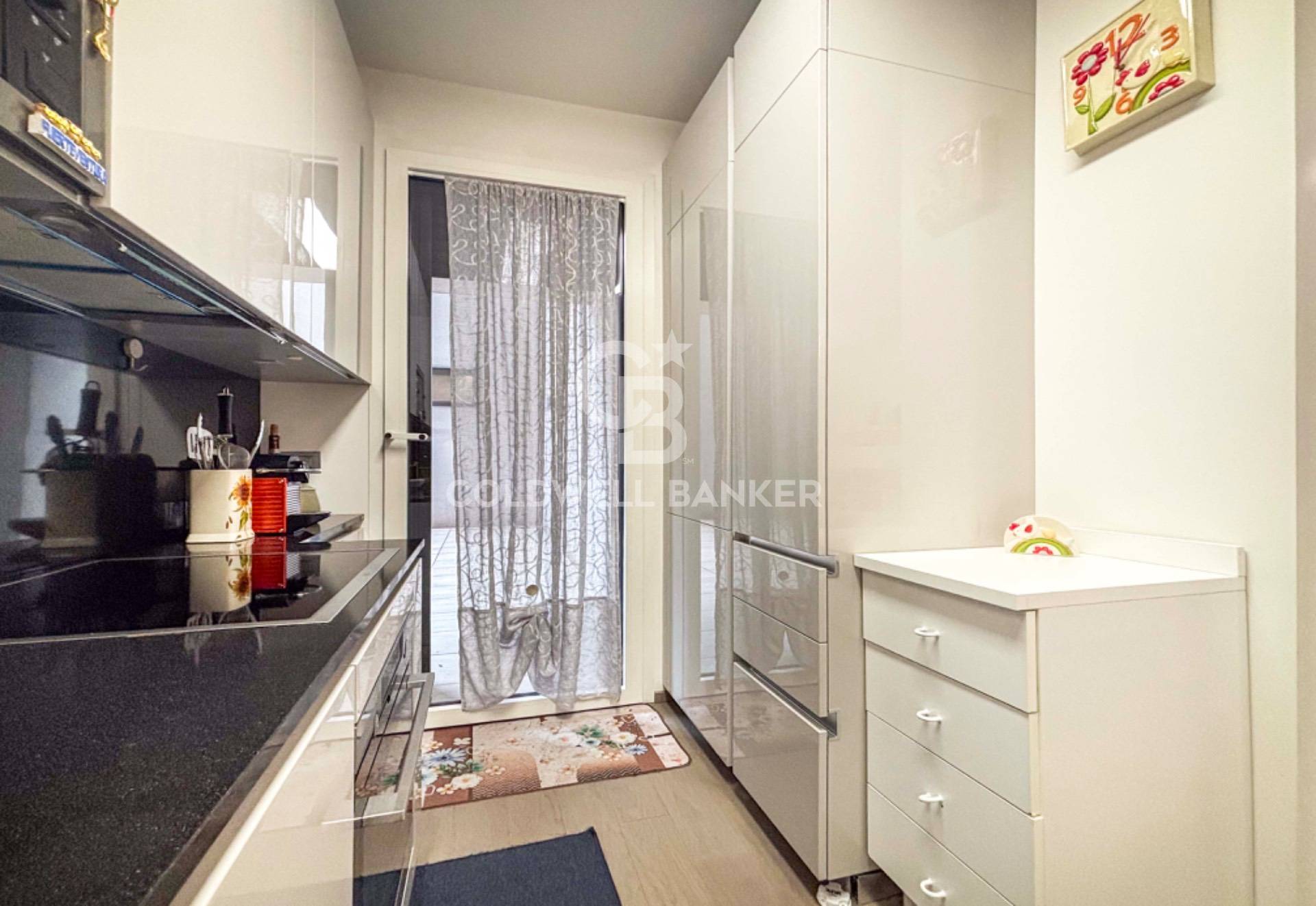 La cucina semi abitabile con uscita su un ampio terrazzo con affaccio sulla corte interna.