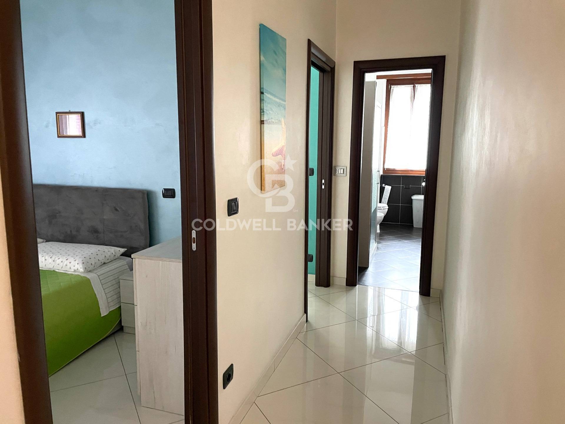 La superficie dell'immobile di 84 metri quadrati e si compone di un'ampia zona giorno con angolo cottura con cucina fornita di tutti gli elettrodomestici, due spaziose camere da letto, un bagno finestrato con doccia, un grande balcone verandato e una cantina al piano interrato.