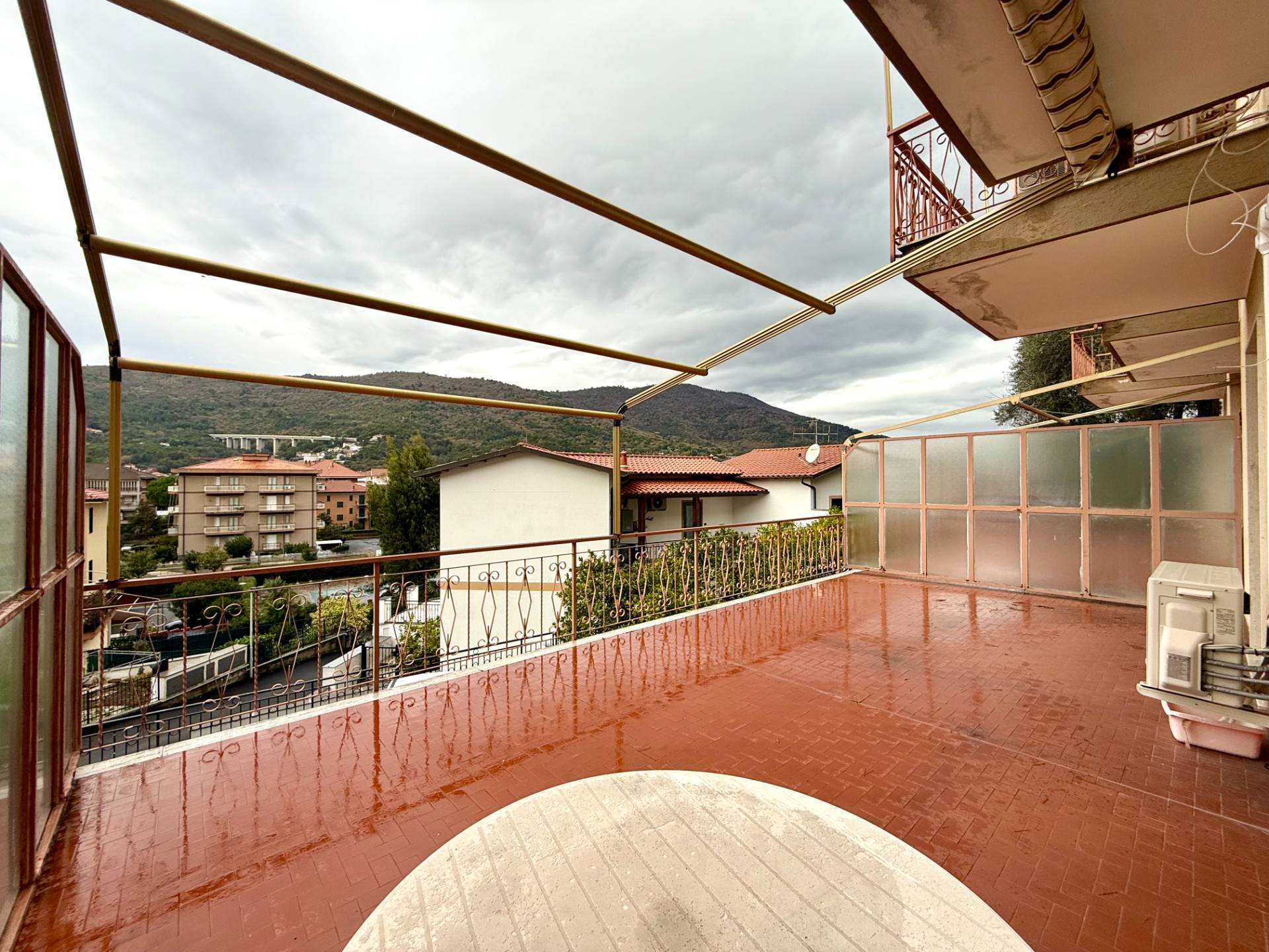 Andora - Trilocale con Terrazza a 600 m dal Mare In gradevole contesto residenziale, nelle immediate vicinanze a piedi del centro di Andora, delle spiagge e di tutti i principali servizi, questo ampio tre locali oltre cucinotto si trova al piano terreno di un piccolo condominio dei primi anni settanta, ed internamente composto da : ingresso su disimpegno, soggiorno, due camere matrimoniali, grande terrazza al piano di circa 25 mq, cucinotto semi abitabile e bagno finestrato con vasca.