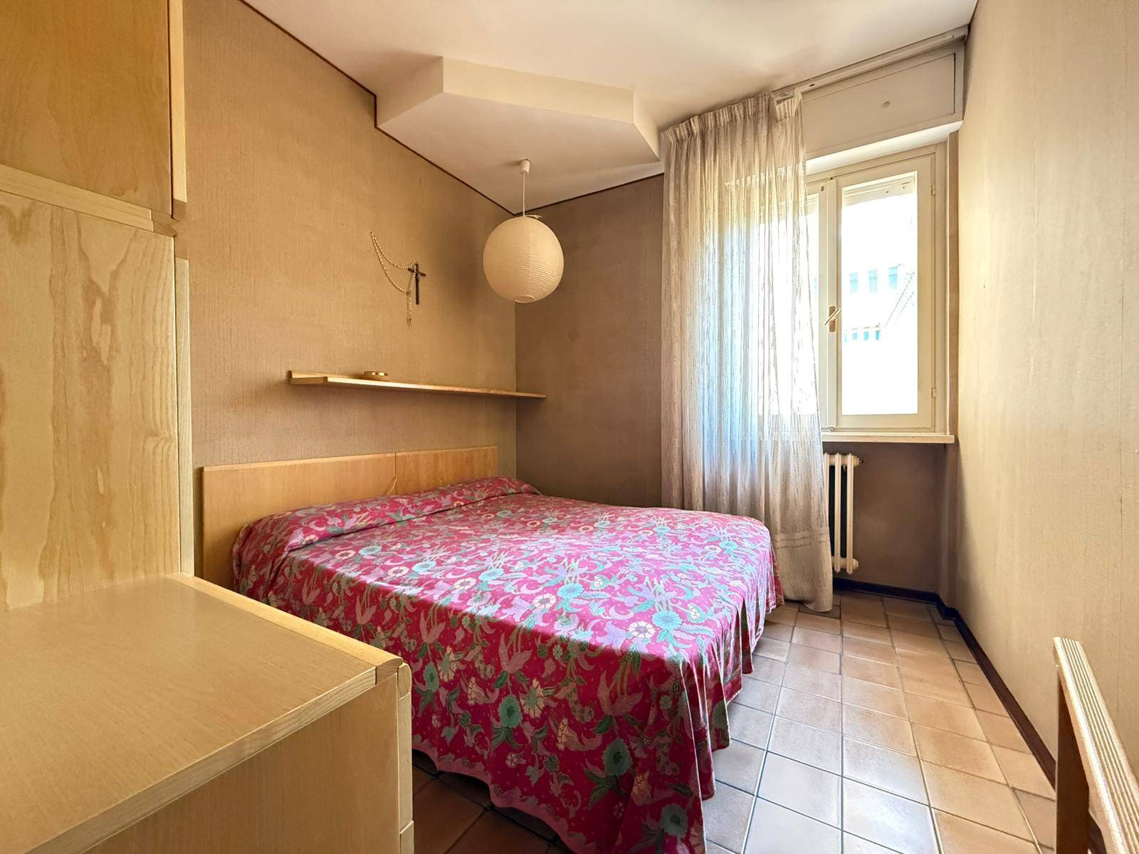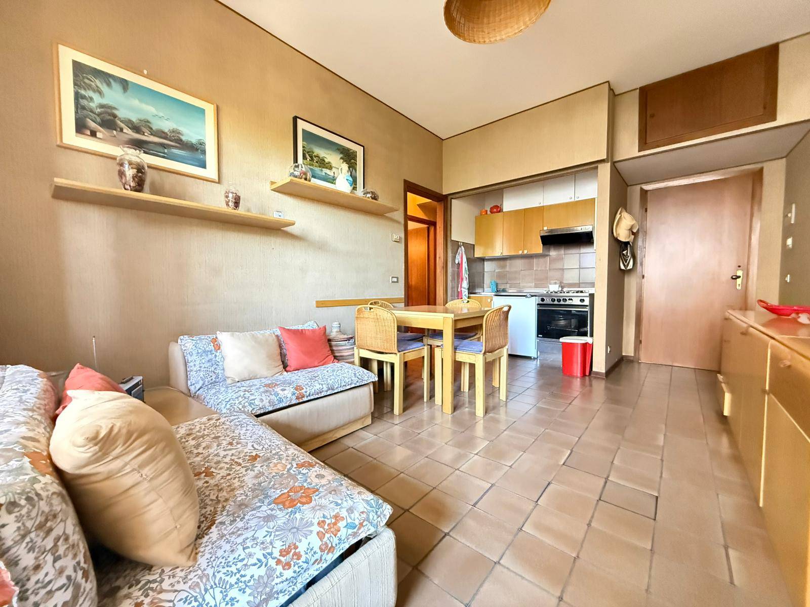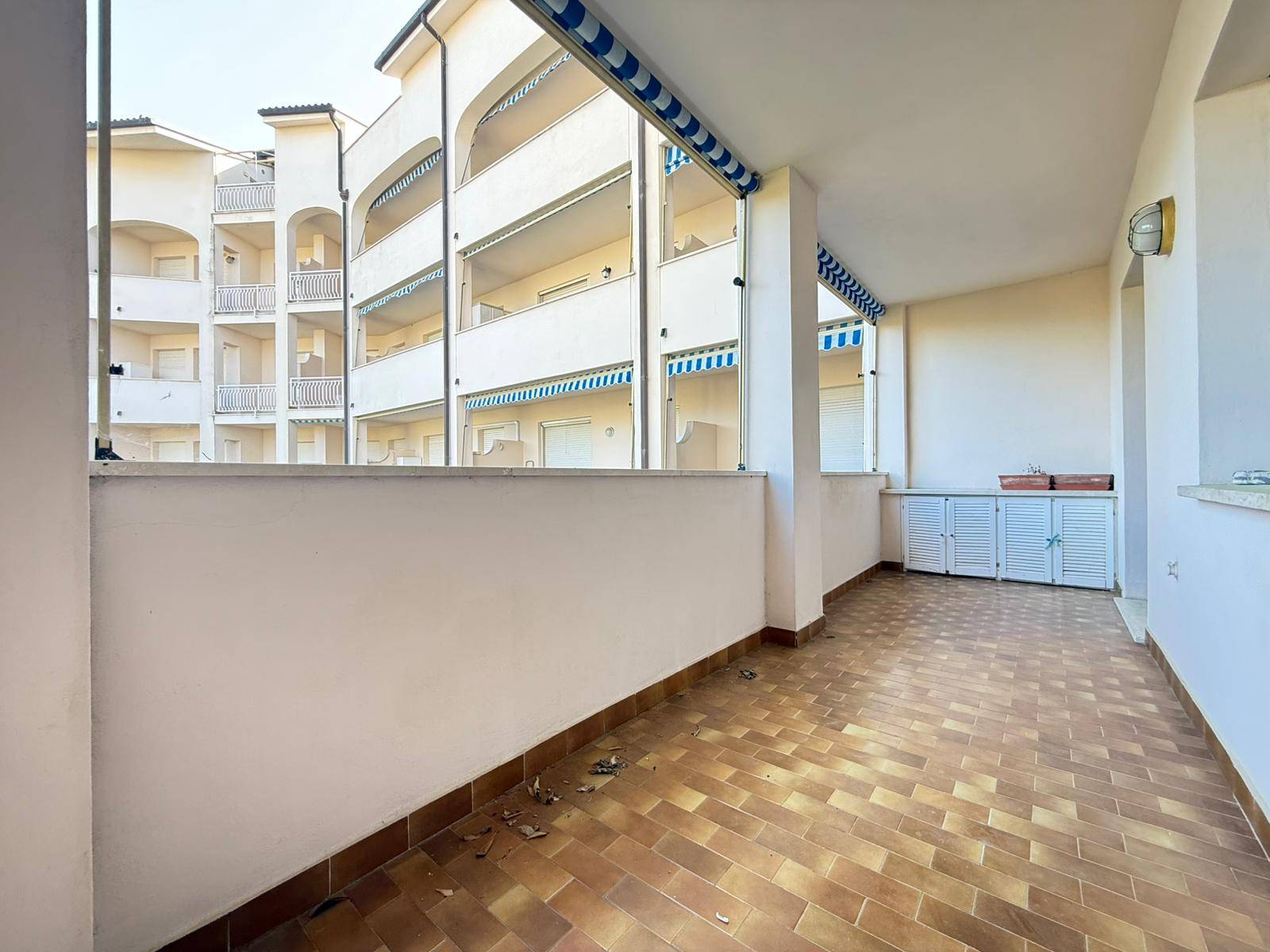 L'appartamento internamente composto da ingresso su soggiorno dotato di angolo cottura, camera matrimoniale, grande camera singola, bagno finestrato con vasca ed ultima ma non per importanza, ampia "terrazza coperta" o "loggiato" di oltre 10 mq, estesa e profonda, accessibile dal soggiorno e dalla pi piccola delle camere.