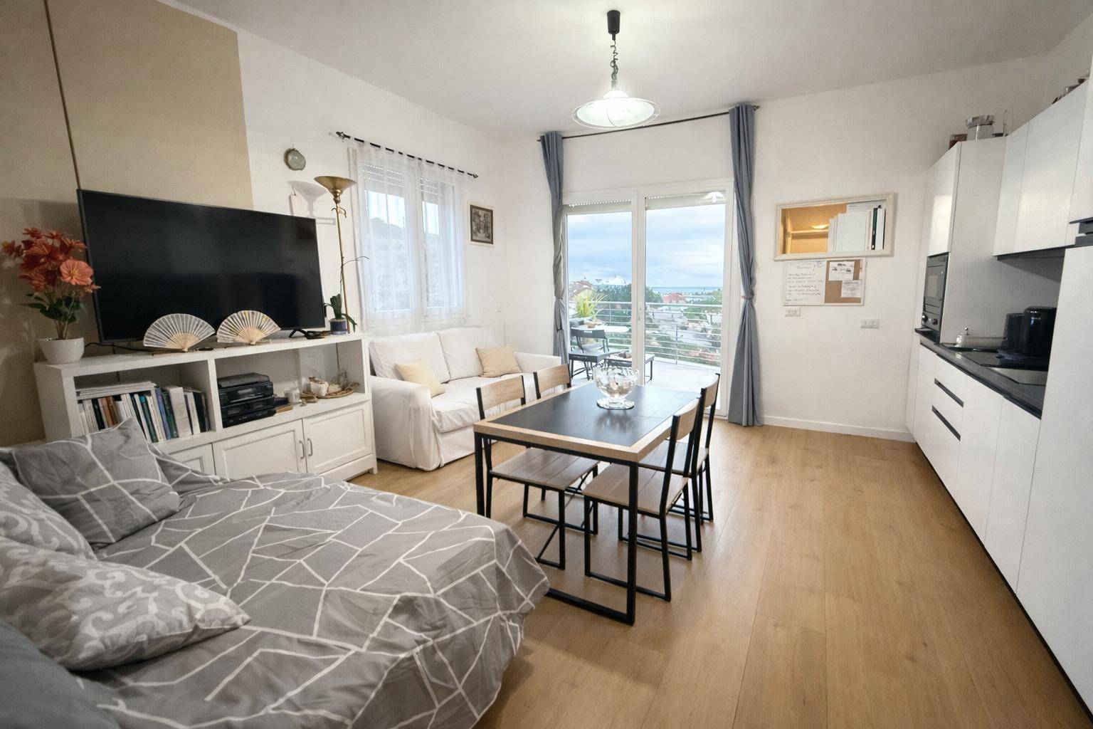 Internamente composto da ingresso su corridoio, soggiorno con angolo cottura con vista mare, terrazzo vivibile, due camere da letto e bagno finestrato.