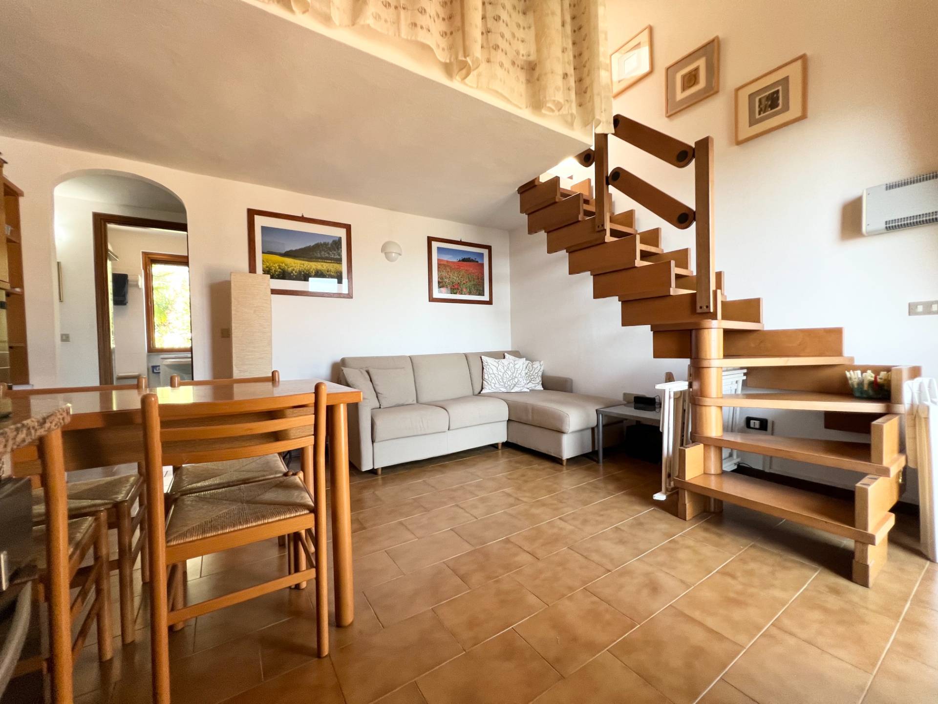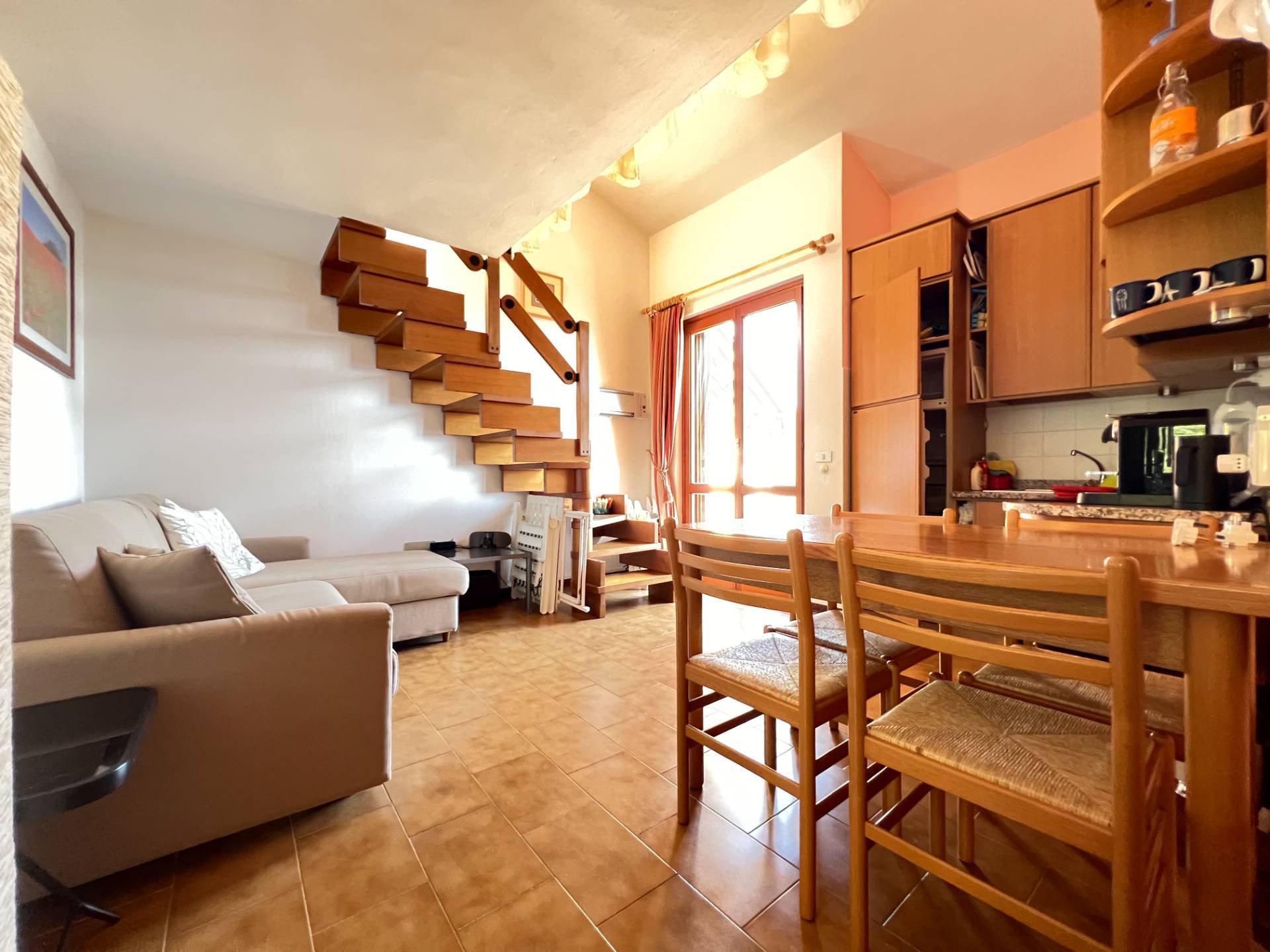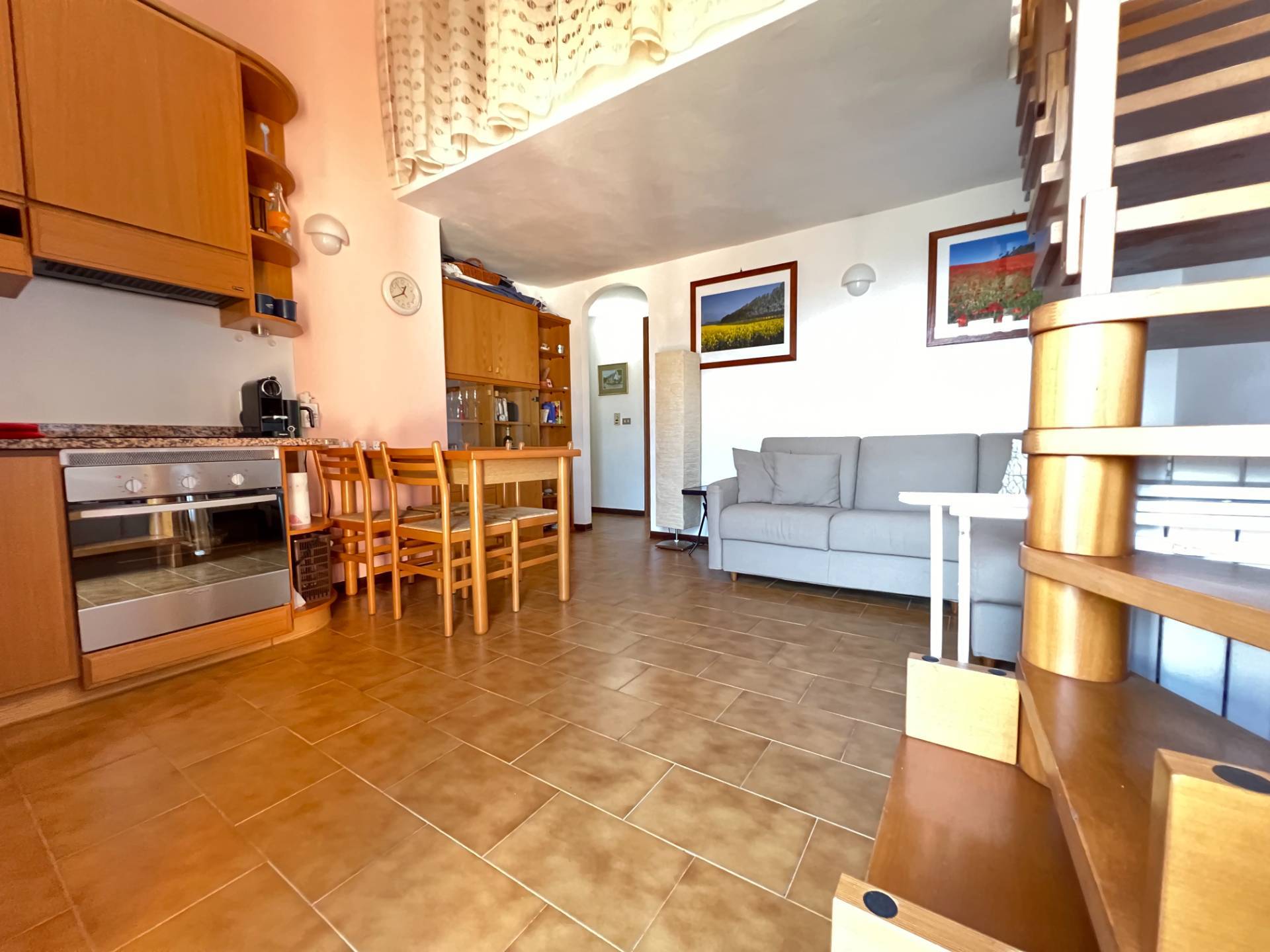 Disposto su due livelli, internamente composto da un grande disimpegno, un soggiorno con balcone panoramico, una camera matrimoniale, una seconda camera soppalcata ed un bagno finestrato con box doccia.
