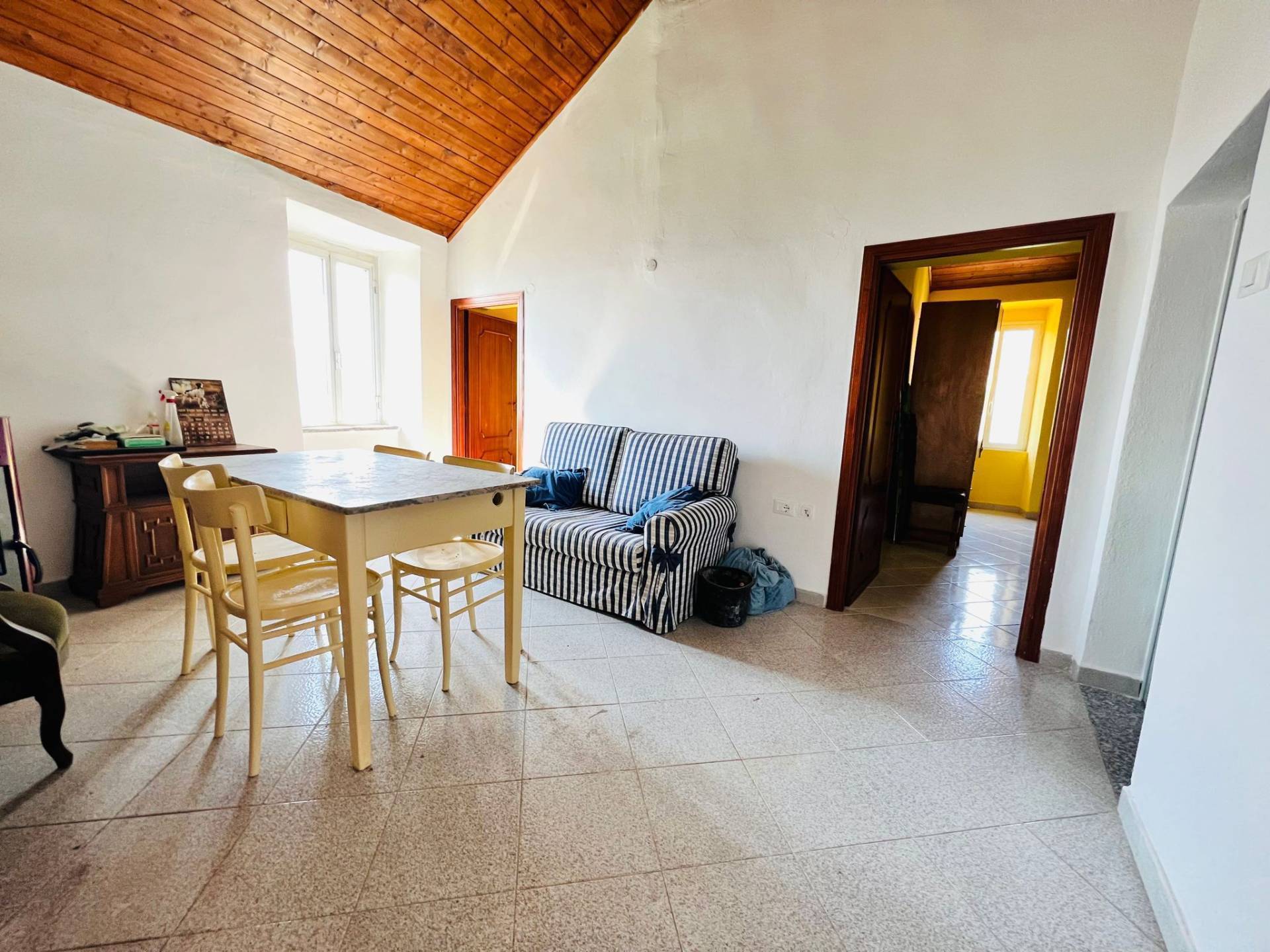 Internamente l'immobile composto da ingresso su ampia zona giorno con stufa a pellet, cucina abitabile, terrazzo vivibile con vista panoramica sul mare, due camere da letto matrimoniali e bagno finestrato con box doccia.