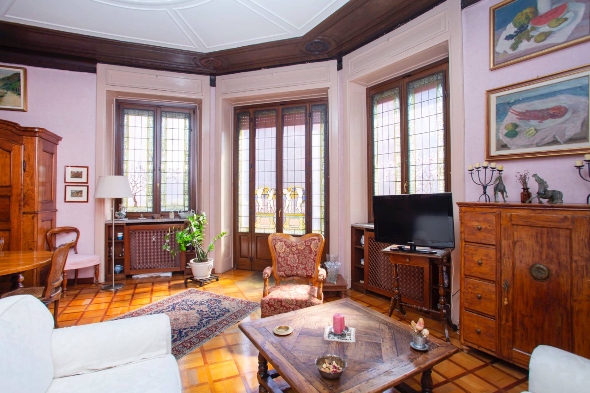 Limmobile si distingue per il suo fascino storico e le finiture di pregio: soffitti alti con fregi originali depoca; parquet a intarsio con eleganti geometrie; infissi nuovi impreziositi da vetri amovibili policromi in stile liberty; ambienti luminosi e ricchi di dettagli architettonici unici.