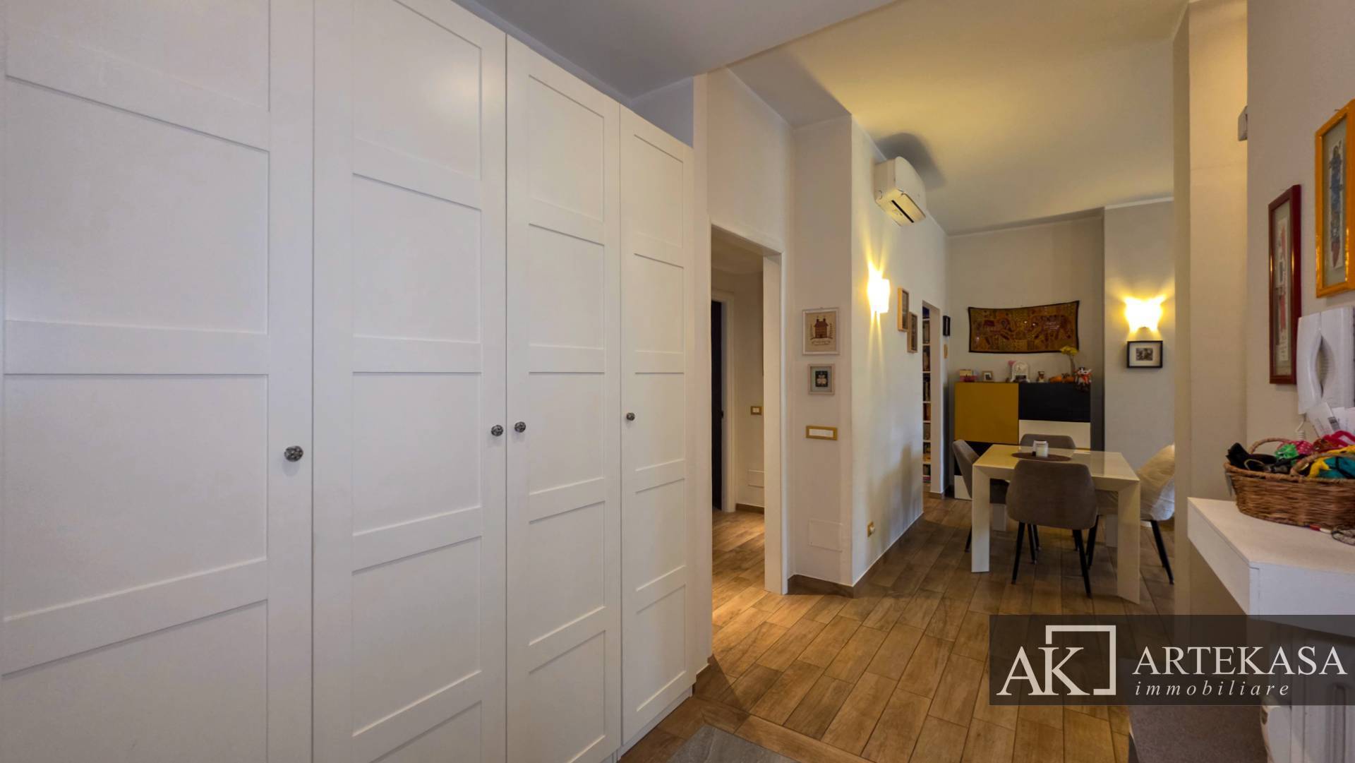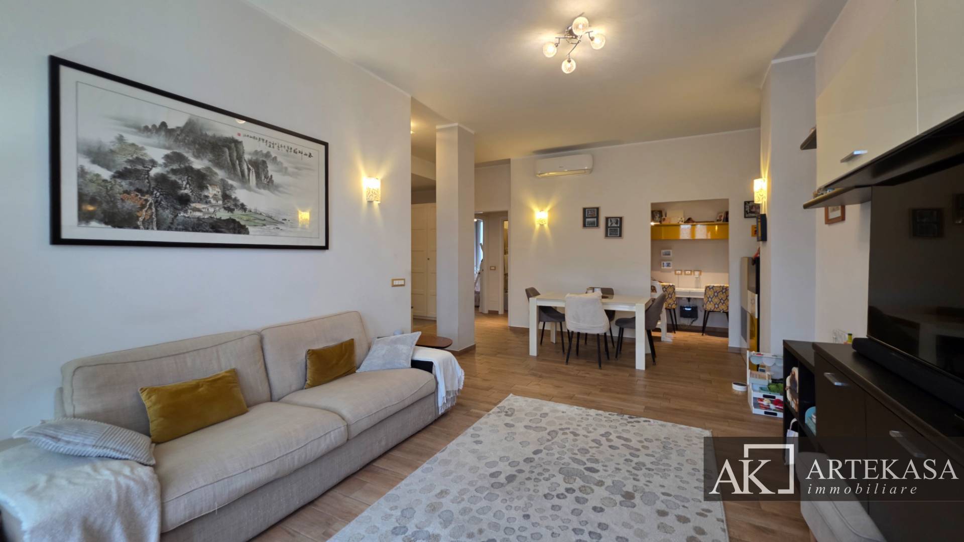 Limmobile si apre su un accogliente ingresso che conduce a un ampio e luminoso soggiorno.