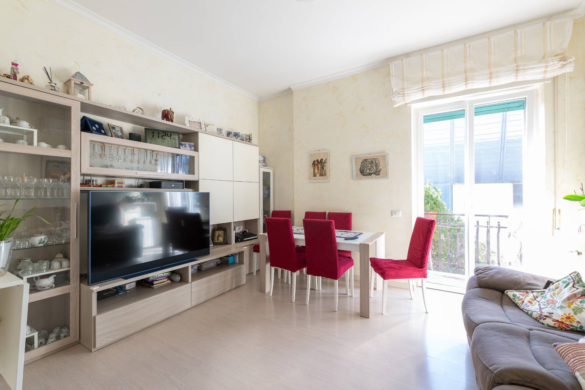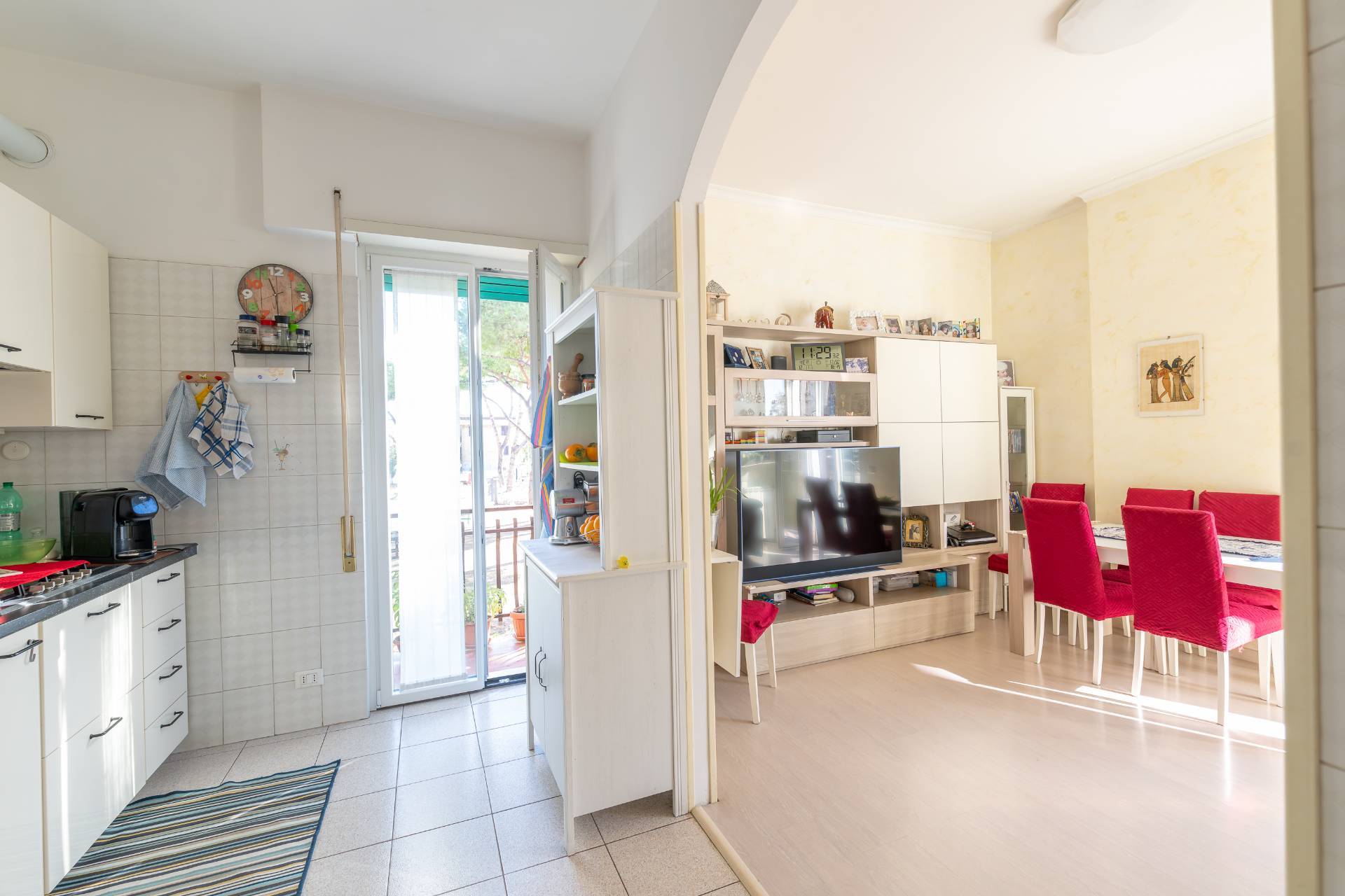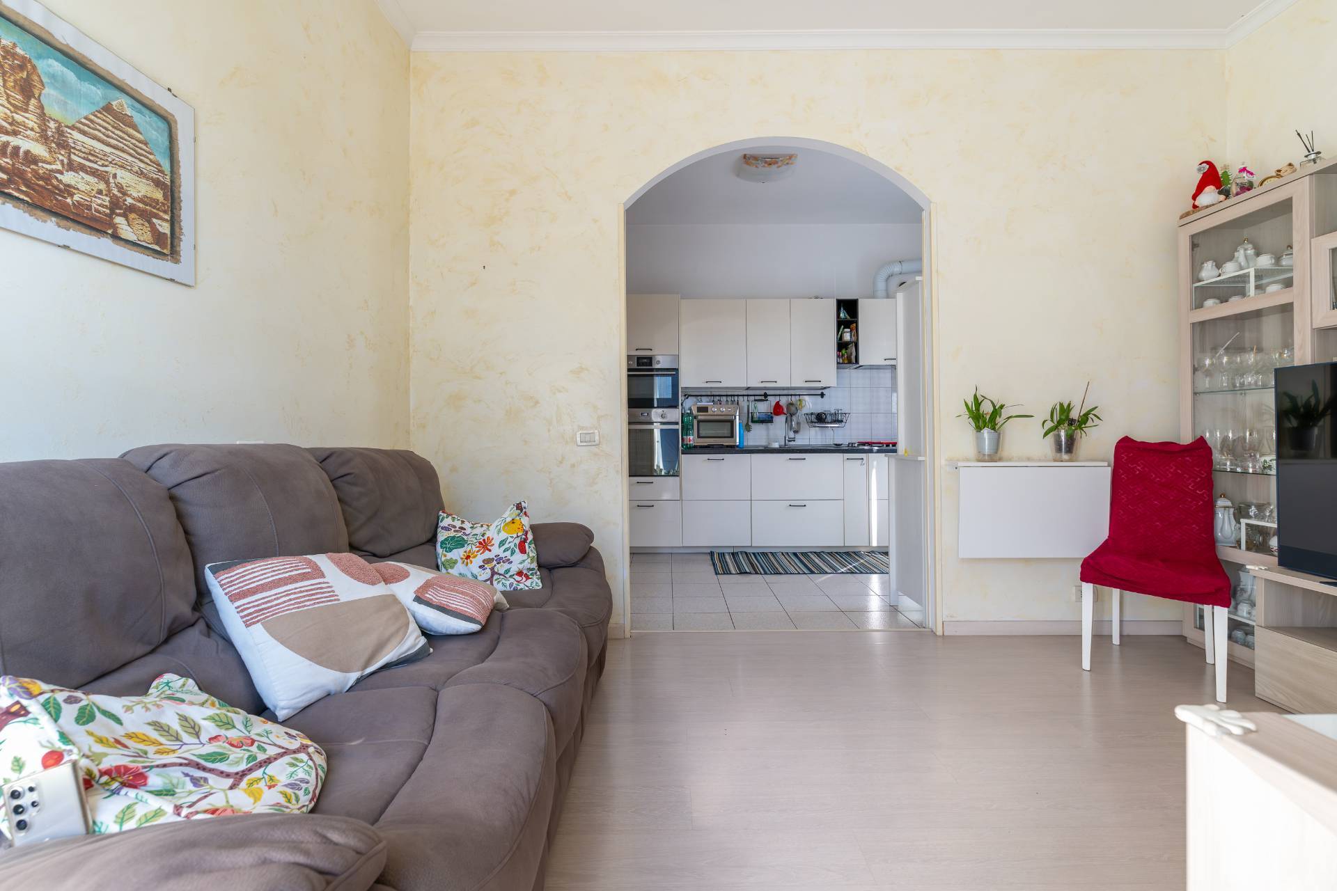 L'appartamento composto da un ampio salone, una cucina abitabile, un disimpegno funzionale, una camera matrimoniale, una seconda camera, un bagno finestrato con doccia e tre balconi, dotato di infissi nuovi, grate di sicurezza e impianto di climatizzazione.