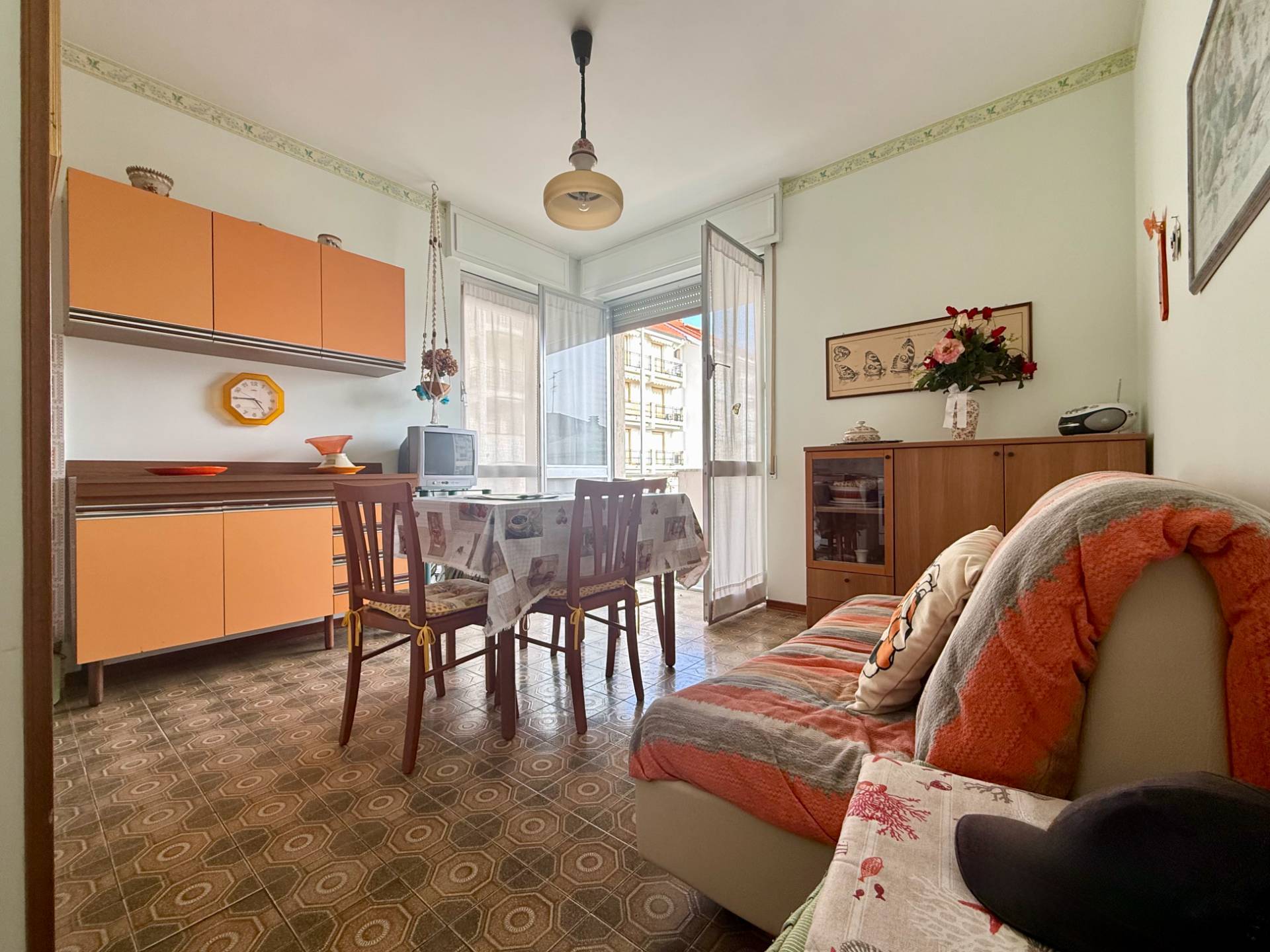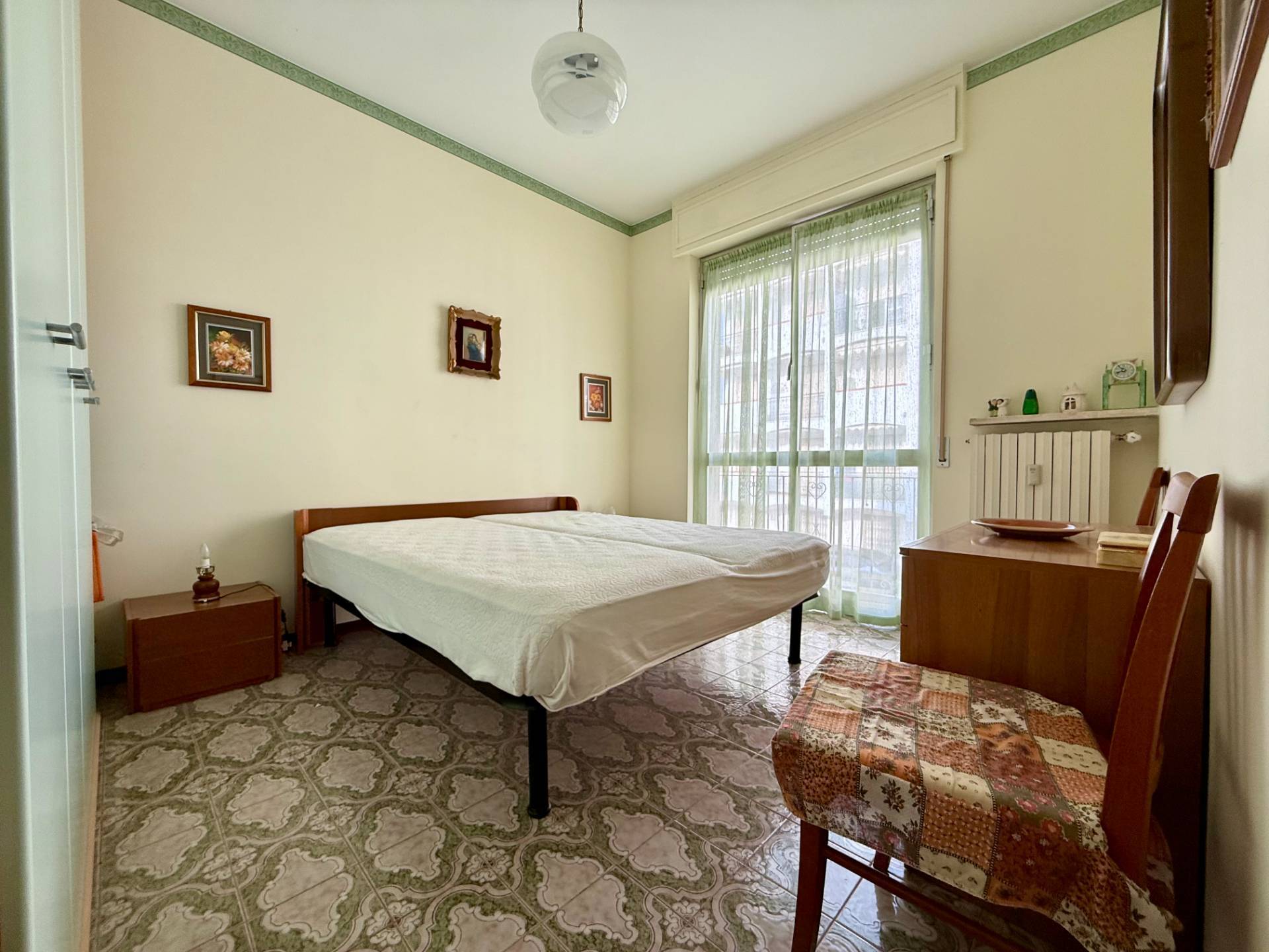 San Bartolomeo al Mare - Trilocale comodo alle spiagge Ampio e luminoso trilocale al primo piano, in quartiere residenziale e prossimo al mare. Composto internamente da: soggiorno con angolo cottura, camera matrimoniale, seconda camera, bagno finestrato con vasca, grande balconata angolare vivibile e ulteriore balcone di servizio.