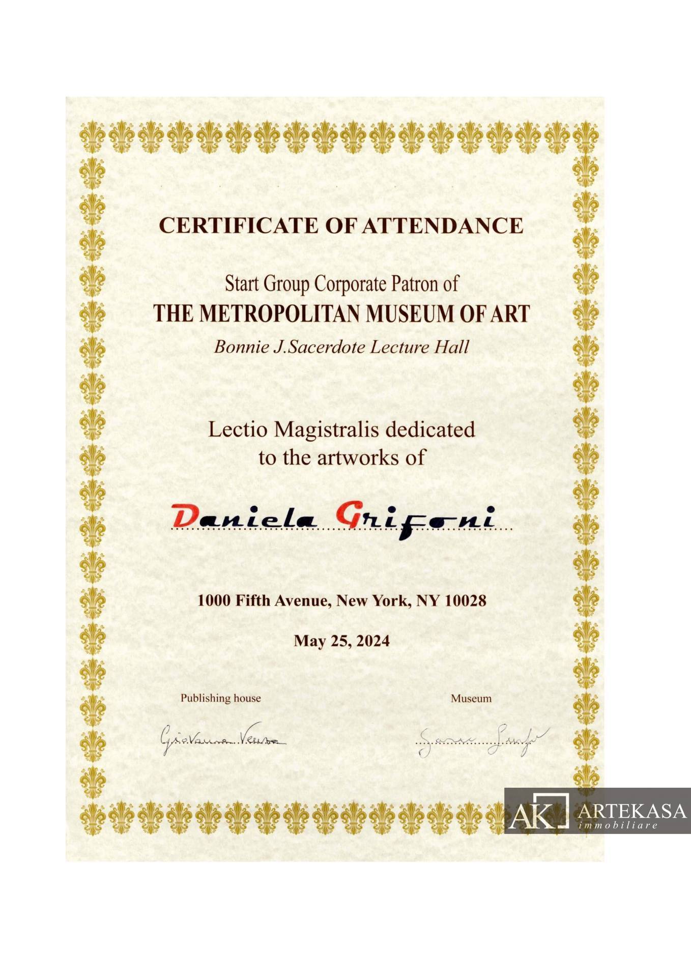Sono due le componenti pi importanti che valorizzano e contraddistinguono GRIFONI ART LIFE: GRIFONI ART LIFE ha raccolto lapprovazione del Metropolitan Museum di New York, che ha voluto dedicare allartista Daniela Grifoni una lectio magistralis su questopera darte urbana.