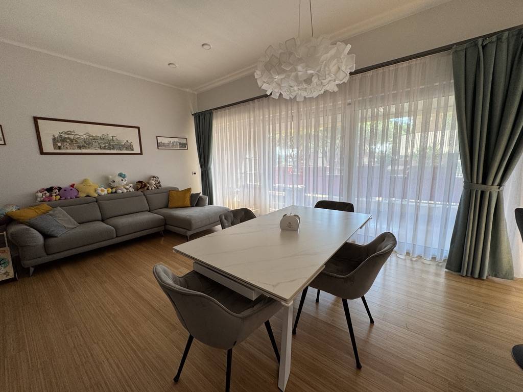 Rifinito con una pavimentazione in parquette di bamboo in tutti gli ambienti (ad eccezione dei bagni), porte ed infissi bianchi ha un'immagine moderna che puo piacere ai giovani e ai meno giovani.