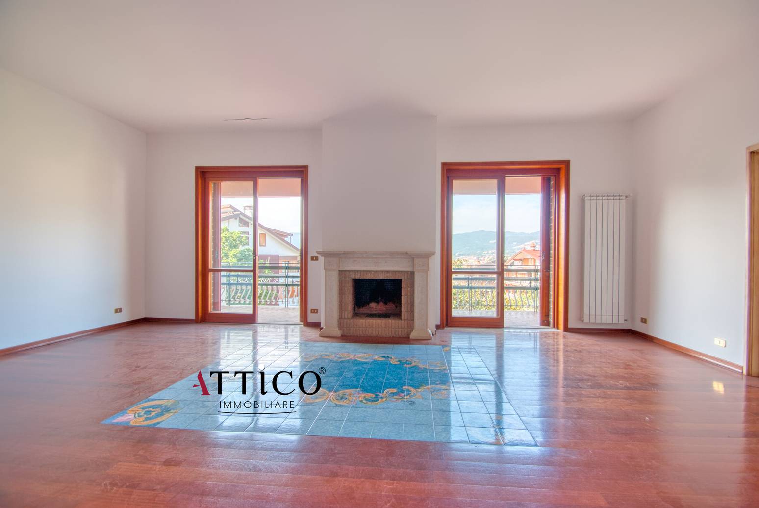 L'immobile, con triplice esposizione e totalmente parquettato, composto da ingresso, salone doppio con camino, tre camere da letto, cucina abitabile e due bagni.