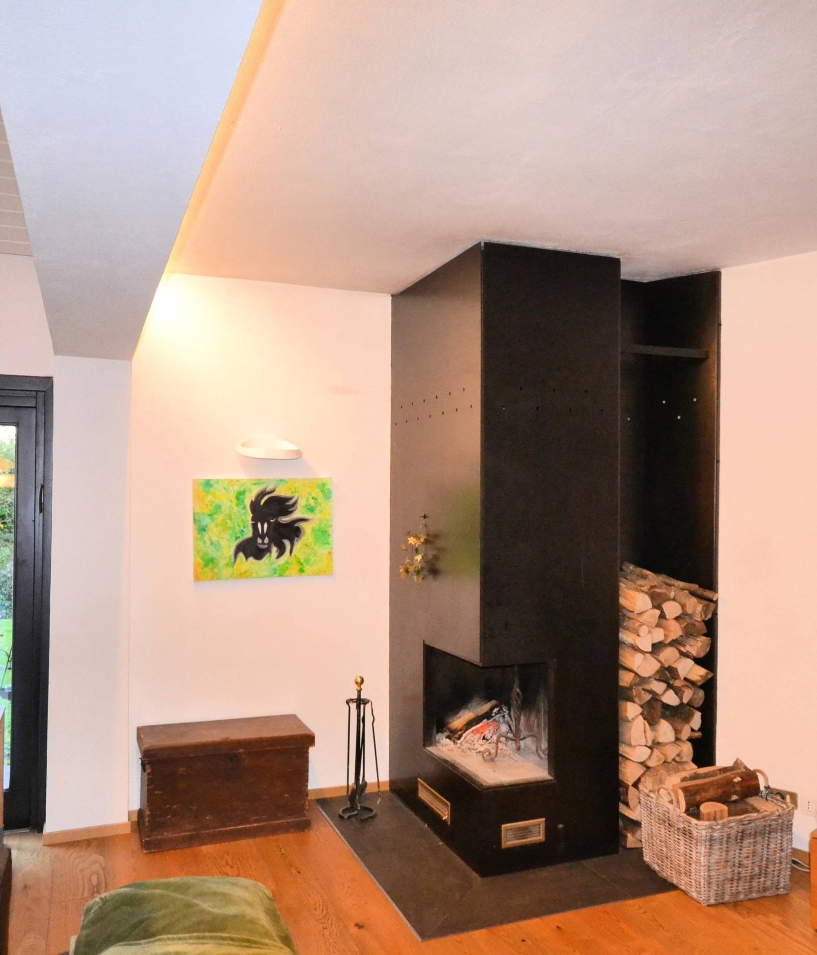 Al piano principale, una cucina abitabile con camino a vista e un elegante bagno per ospiti.