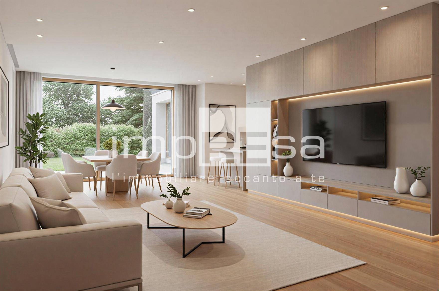 In un complesso residenziale immerso nel verde ma a pochi passi da tutti i servizi, vendesi abbinata disposta su due livelli con garage a giardino.