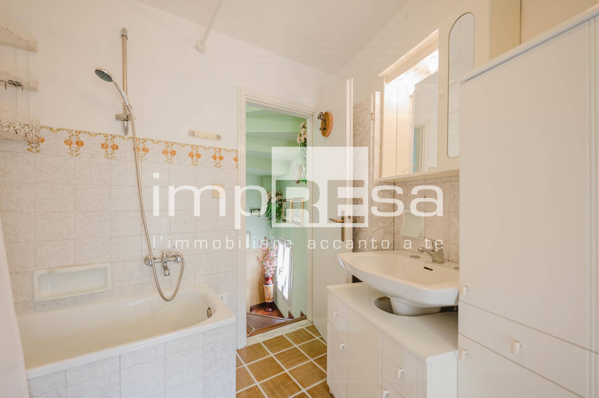 Al piano terra troviamo il soggiorno con cucina separata con una corte esclusiva di 17 mq. Salendo le scale troviamo una camera matrimoniale e il bagno finestrato completo di vasca; entrambi con uscita sul terrazzo.