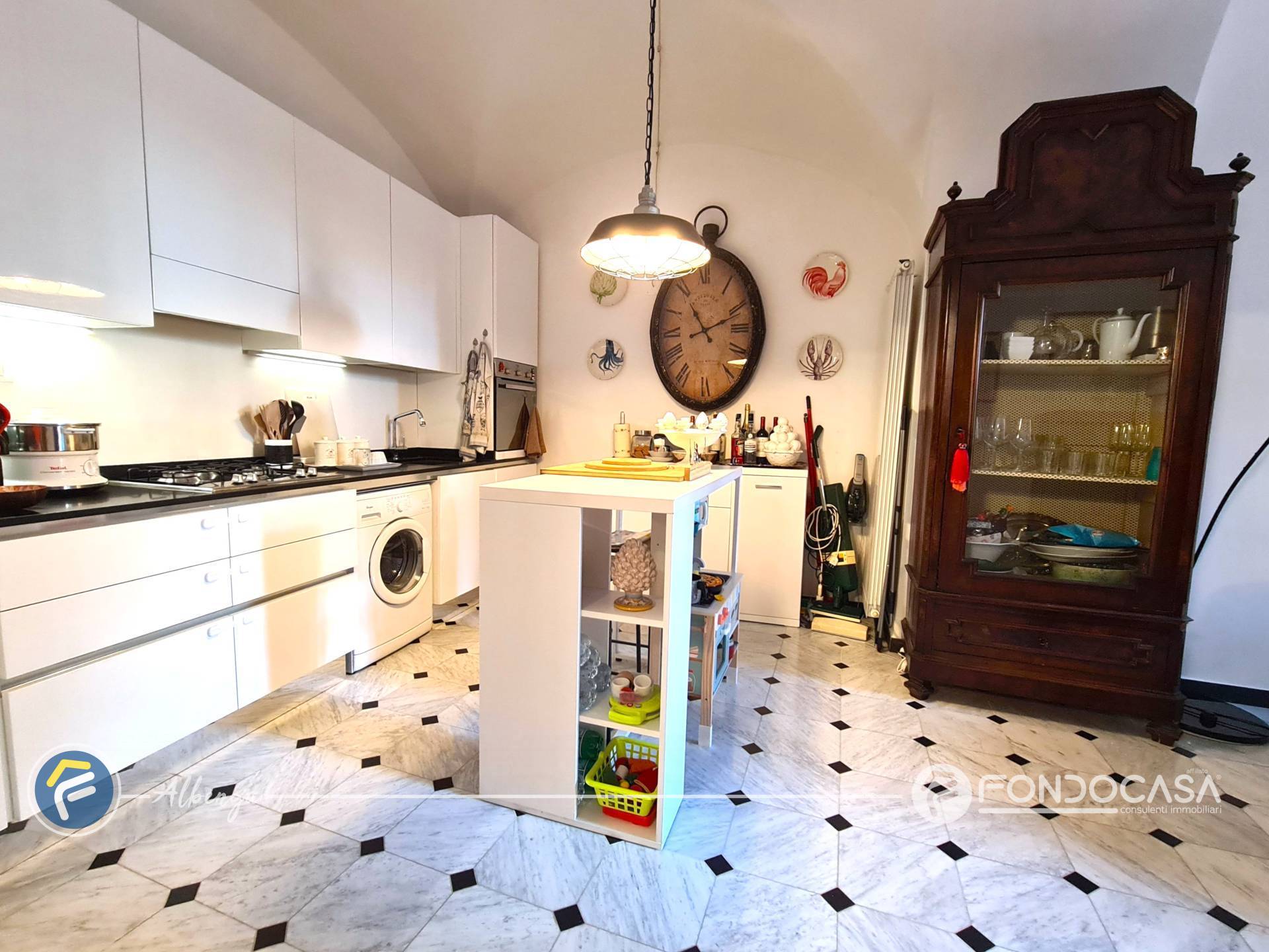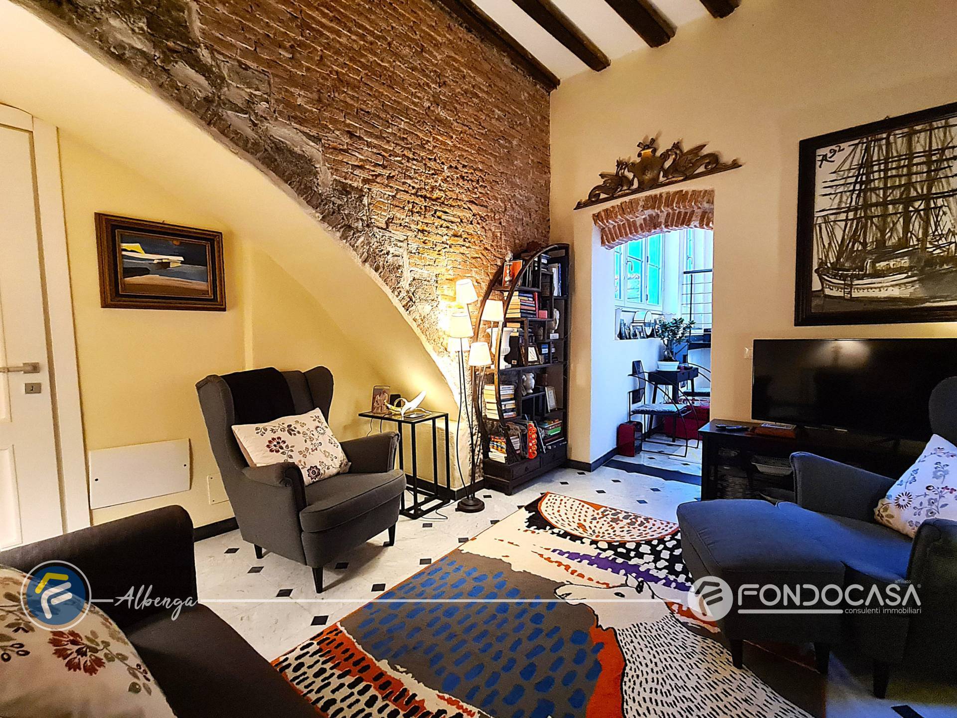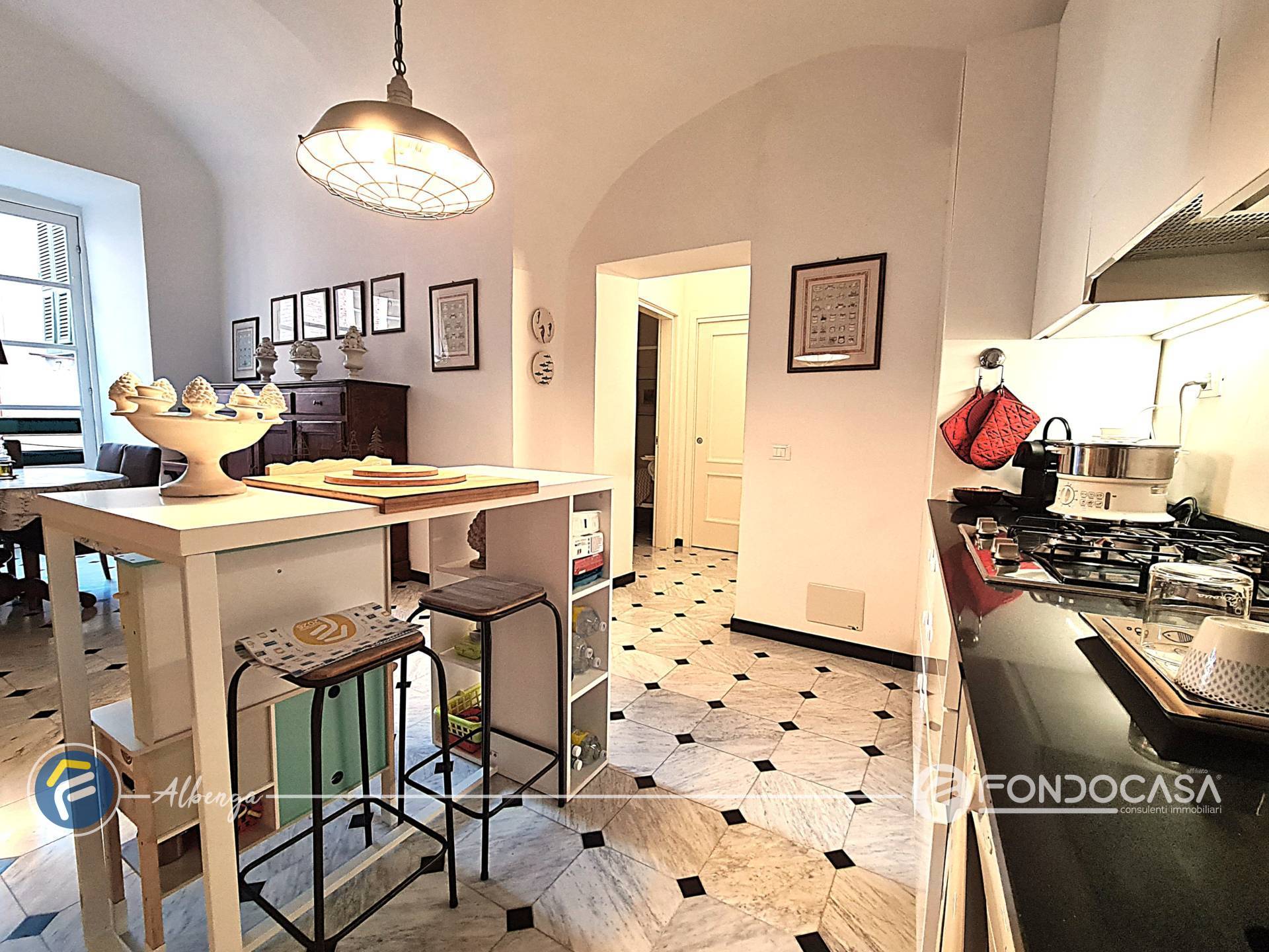 DIMORA DI CHARME NEL CENTRO STORICO CON TERRAZZA Nel cuore dello splendido Centro Storico, lungo la via principale ricca di fascino e storia, appartamento di assoluto prestigio, situato al secondo piano di una torre del 1200. Una posizione unica, dove ogni servizio, negozio e spiaggia raggiungibile comodamente a piedi, vivendo appieno latmosfera autentica della citt, senza alcuna spesa condominiale.