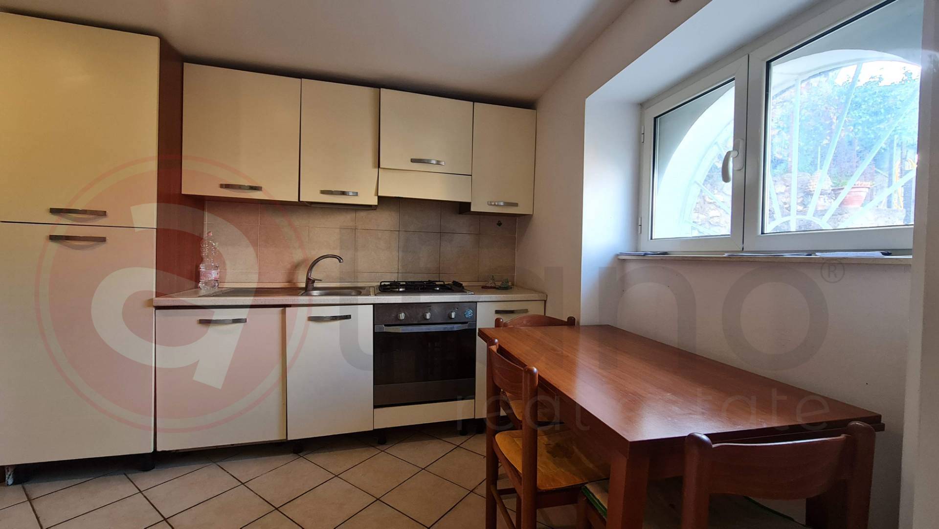 C' la possibilit di dividere la casa in due soluzioni abitative chiudendo l'attuale scala interna, rendendo le unit completamente indipendenti fra di loro. Ad oggi, la propriet composta da tinello con cucina a vista, salone, camera matrimoniale, servizio e grazioso terrazzino angolare; scendendo la scala interna troviamo un secondo salone, seconda camera da letto, servizio.