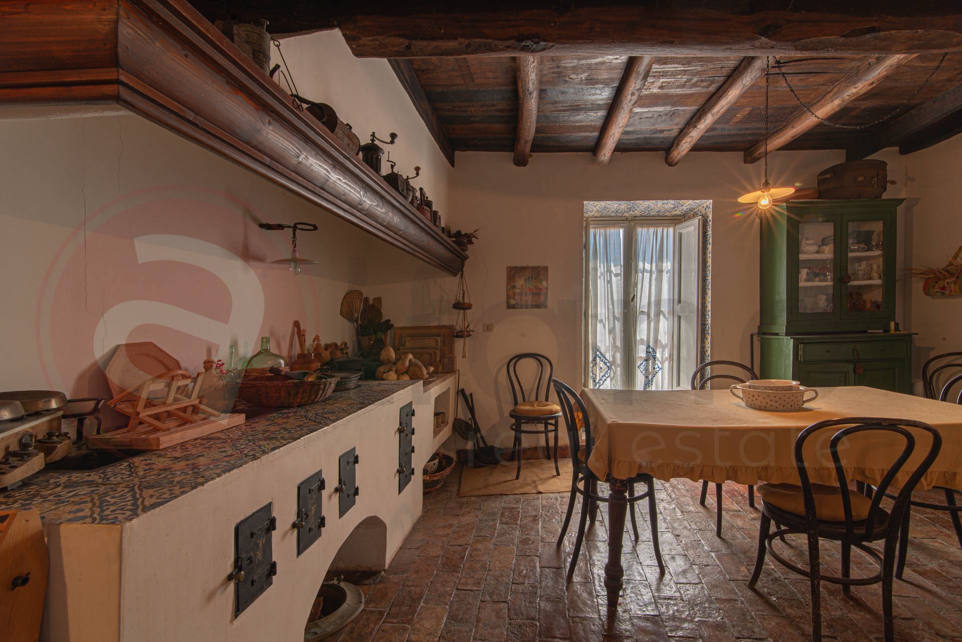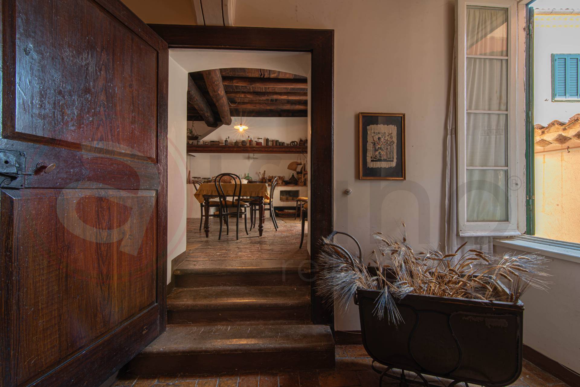 Altri elementi di pregio presenti all' interno della casa, che garantiscono un fascino tipico degli immobili del 700, sono i soffitti alti con travi di legno a vista ed i pavimenti in cotto.