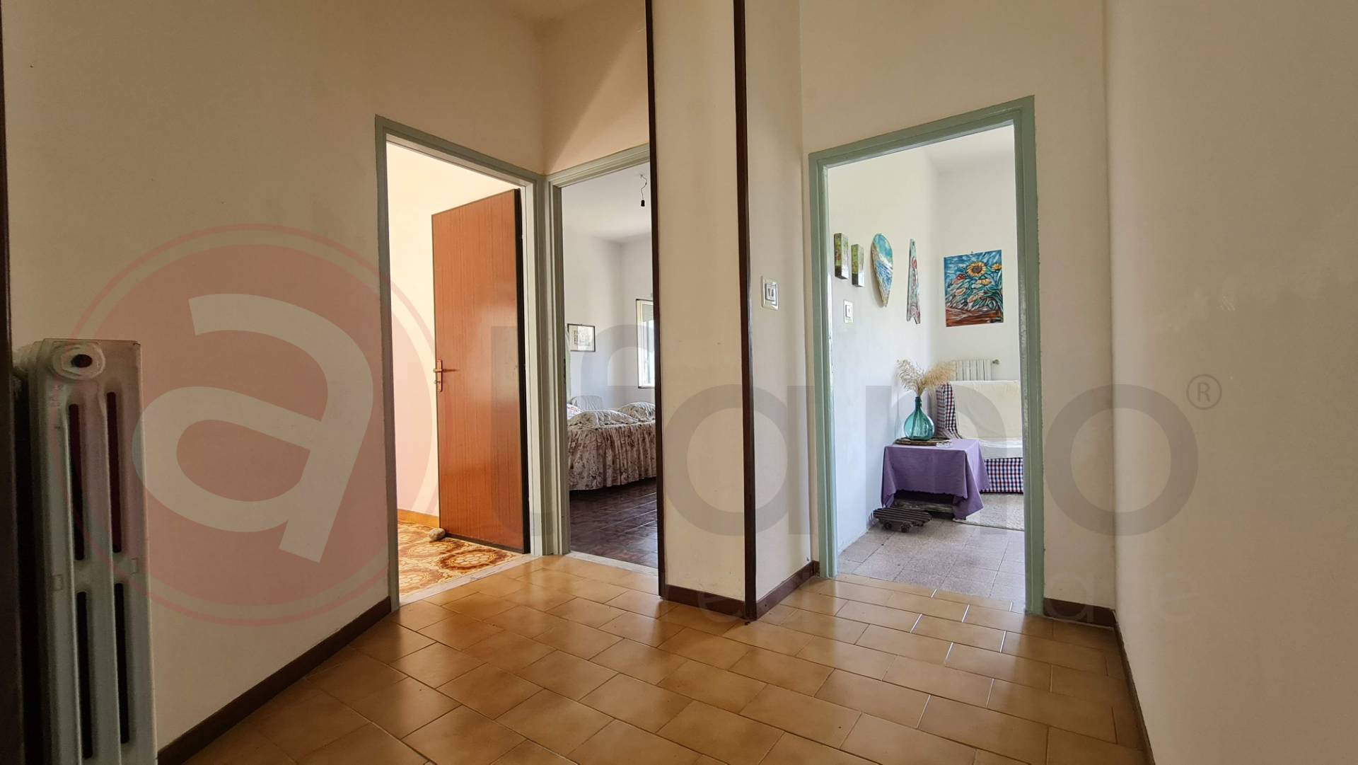 Nel complesso questo appartamento abitabile sin da subito, i pavimenti sono in ottimo stato, con cementine originali, gli infissi sono nuovi, in alluminio con doppio vetro, zanzariere e persiane, tutti gli impianti ( acqua, luce e gas metano ) sono collegati alla casa, ma attualmente sospesi in quanto l'immobile non abitato in maniera continuativa.