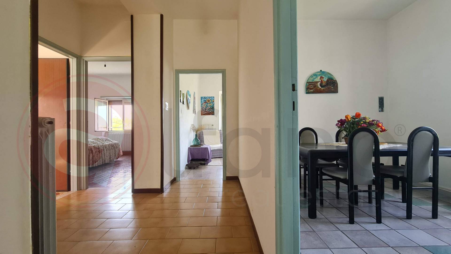 L'appartamento composto da ingresso, cucina abitabile, sala da pranzo, tre camere da letto e servizio.