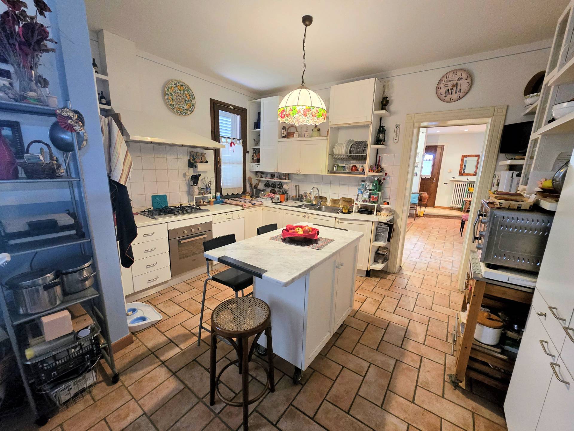 La villetta disposta su due livelli fuori terra, al piano terra composta da ingresso, soggiorno con camino, sala da pranzo, cucina abitabile con accesso ad un ampio portico, disimpegno con bagno e lavanderia/ripostiglio che ha laccesso anche dallesterno; il piano primo si raggiunge con una bella scala e si compone di un ampio spazio che serve come salotto/disimpegno per raggiungere una camera matrimoniale con bagno privato ad uso esclusivo, camera matrimoniale con cabina armadio, camera matrimoniale, studio/camera e bagno con vasca e doccia.