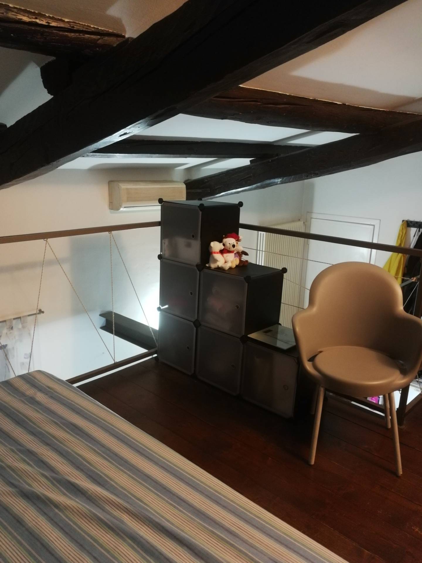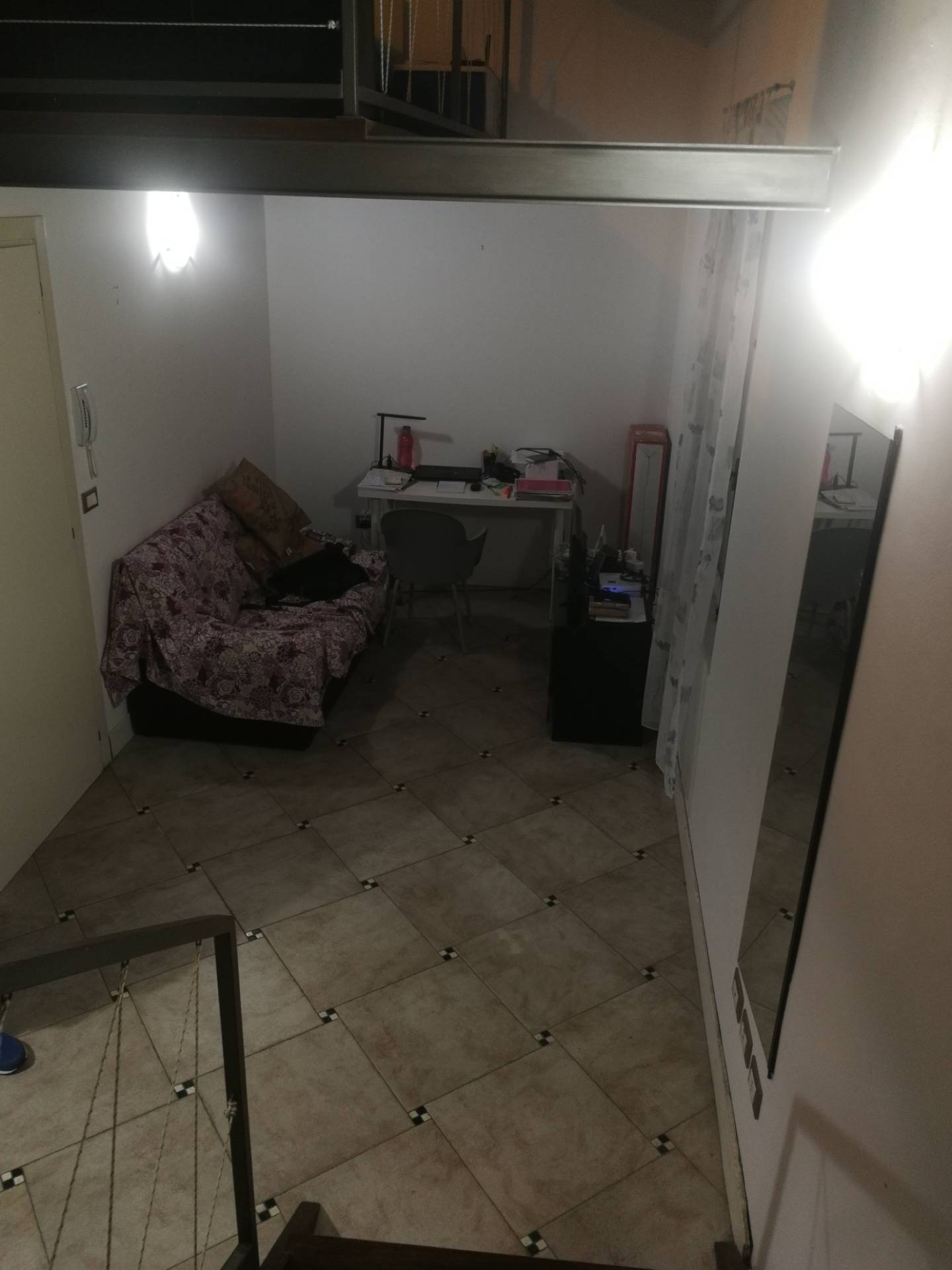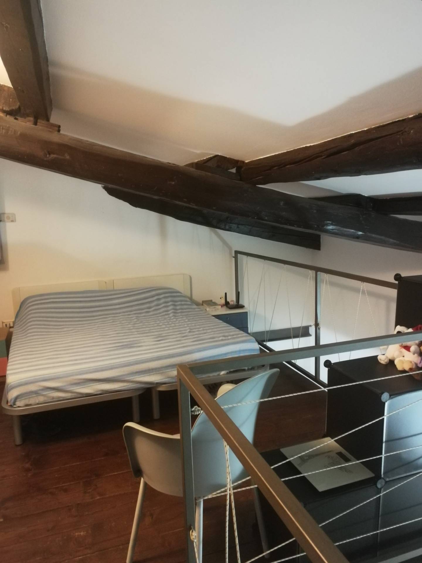 in primo piano, in prestigioso stabile d'epoca con soffitti lignei a cassettoni dipinti , in zona centralissima a due passi dal duomo, ottimo e particolare bilocale ristrutturato finemente , con travi a vista, luminoso e silenzioso disposto su due piani di ingresso, soggiorno con cucina a vista , antibagno e servizio,camera da letto in soppalco, utenze autonome, basse spese condominiali, climatizzatore.