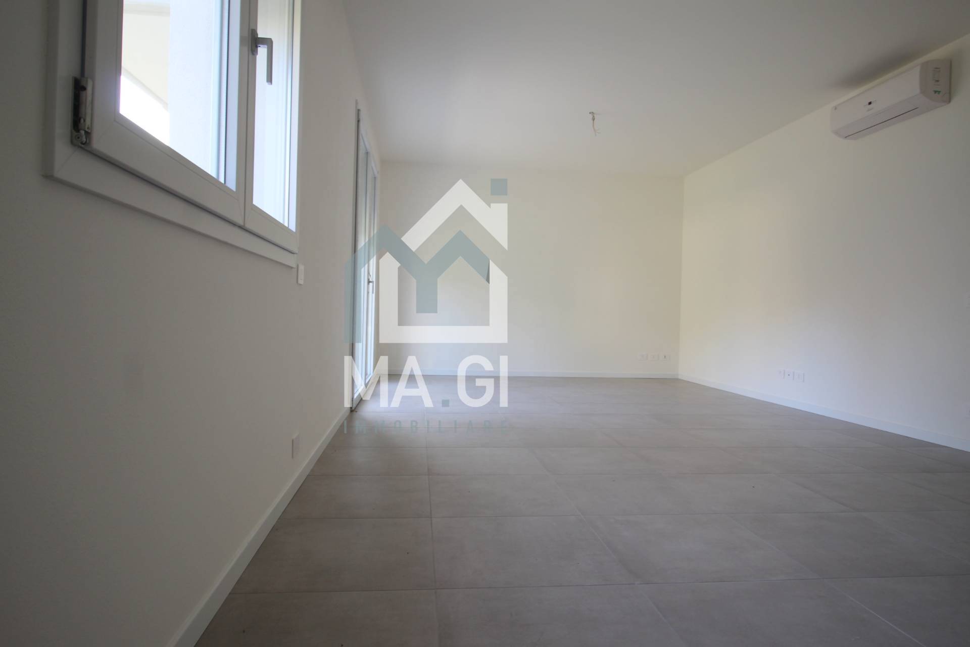 Nella zona di S. Bona a Treviso, in vendita un moderno appartamento di 2 camere da letto, situato al piano terra con giardino privato su tre lati di circa 270 mq. L'appartamento dispone di un ingresso indipendente ed composto da un luminoso soggiorno con cucina a vista.
