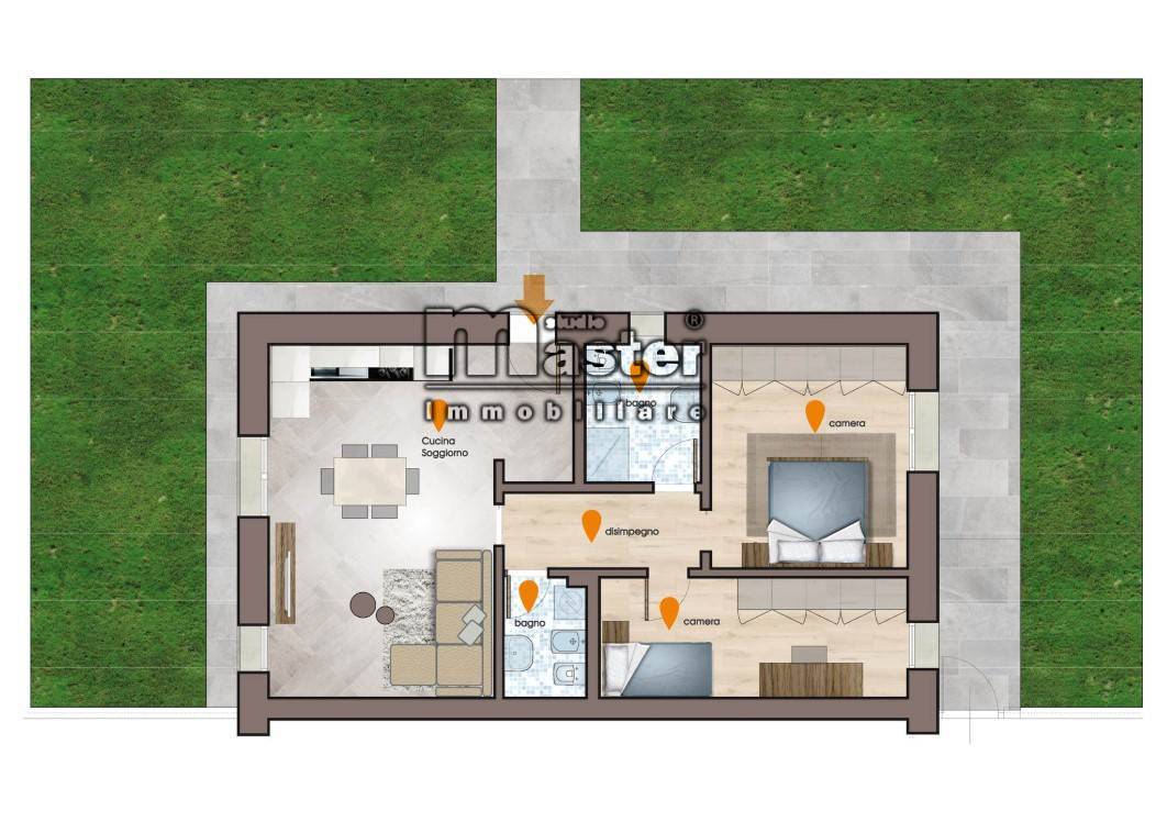L'appartamento composto da un ampio soggiorno con angolo cottura luminoso, GIARDINO PRIVATO DI OLTRE 250MQ., un bel disimpegno, 2 camere e 2 bagni, un box auto al ***.*******.** ed un posto auto esterno.