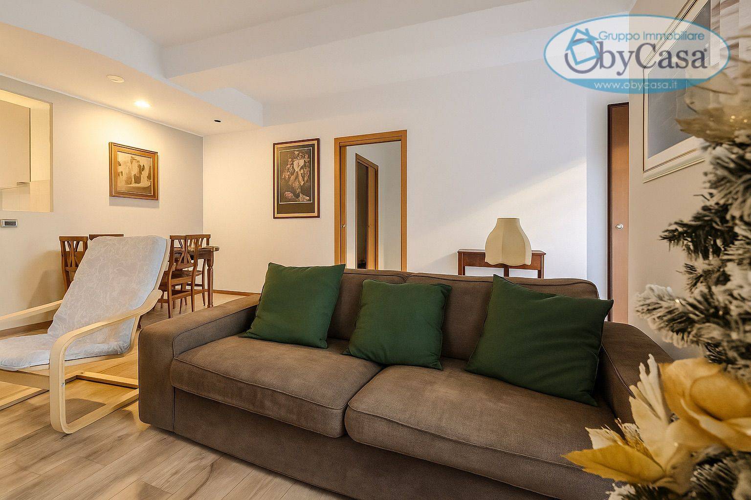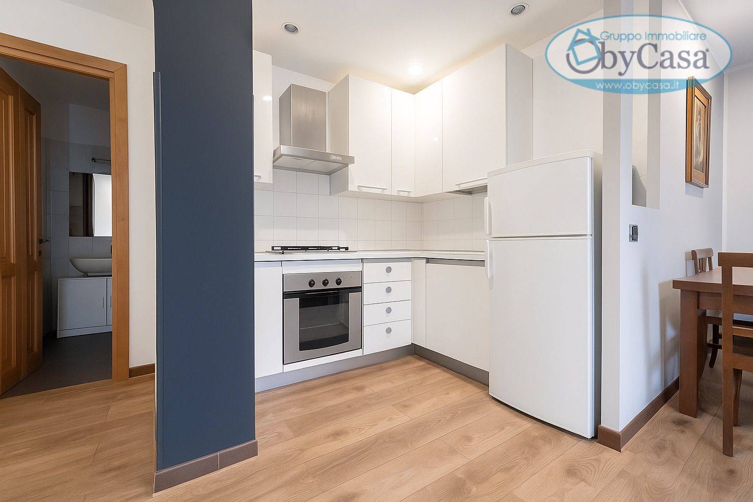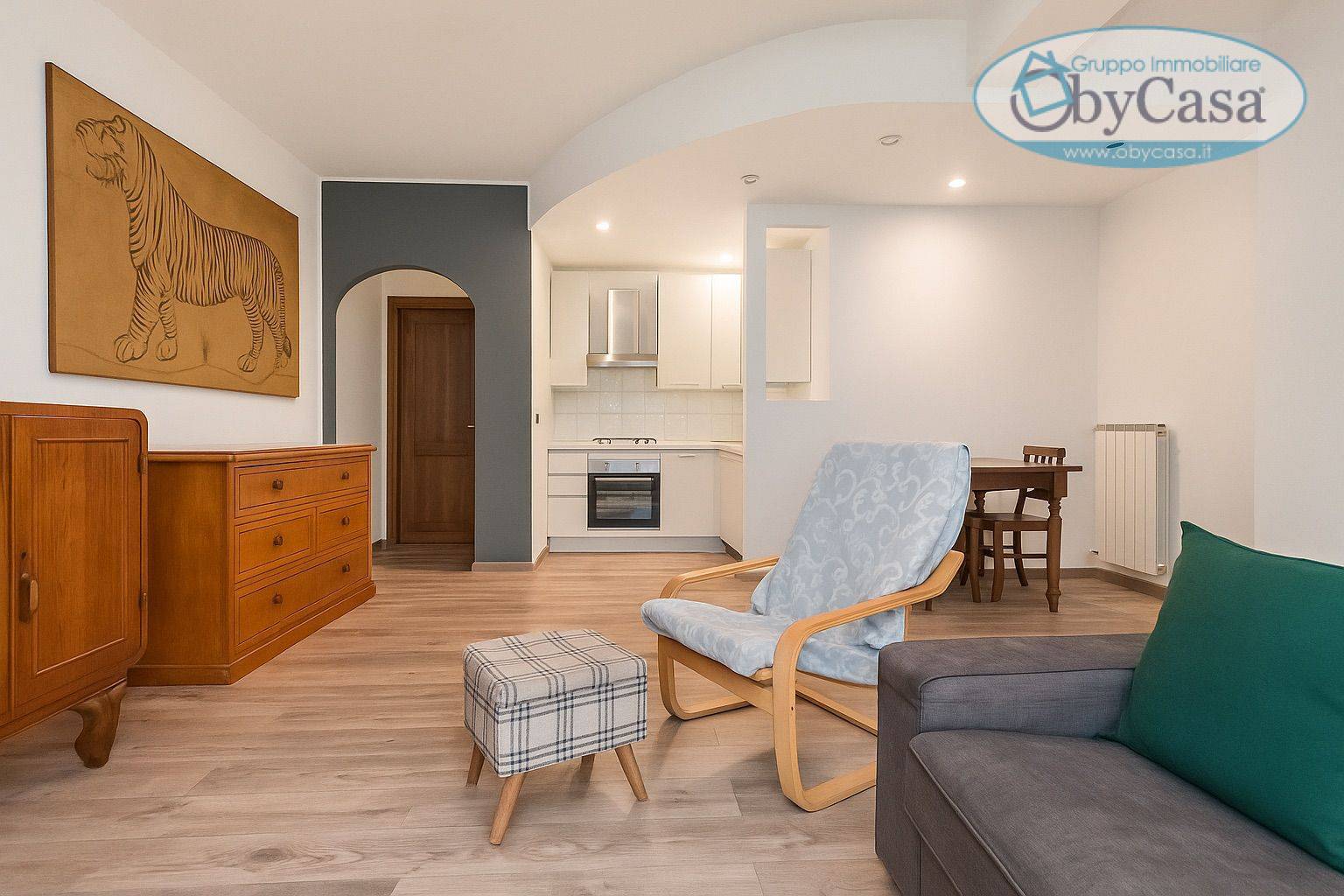 Zona centrale. Piano terra con entrata indipendente. Soggiorno, cucina a vista, camera, bagno, giardino e box auto. Ristrutturata.