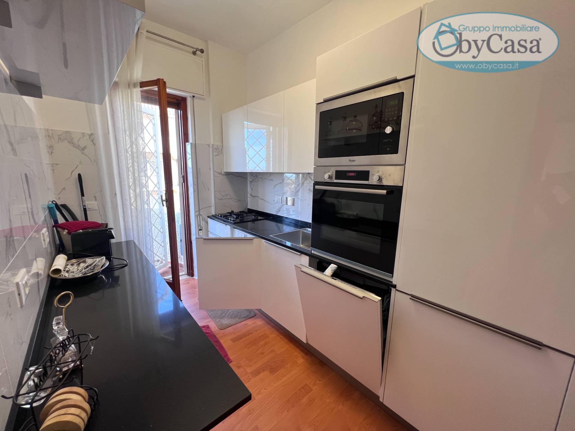 ObyCasa di Santa Marinella propone in vendita appartamento, ottimo stato e finemente arredato, composto da ampio soggiorno con terrazzo abitabile vista mare, cucina con balcone vista mare, disimpegno, camera da letto matrimoniale con vista mare, bagno con doccia e finestra.