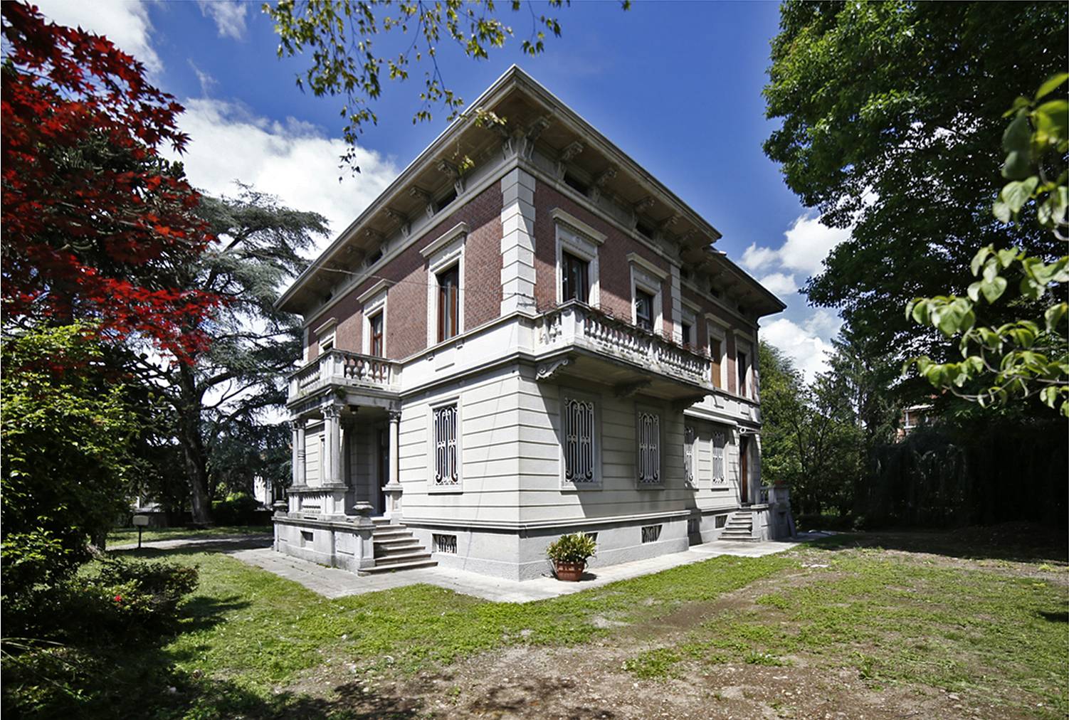 Nel parco secolare ad oggi troviamo le seguenti piante: Cedro del Libano, Abete, Betulla, Araucaria, Acero rosso, Querce, Palme, Azalee, Camelie, Rododendro, Magnolia, Glicine ecc ecc. FINITURE: Corridoio ingresso, cucicna, disimpegno notte con pavimentazione ceramica 60X120; Soggiorno/pranzo con parquette essenza rovere posato a spina di pesce; Camere e cabina armadio con parquette essenza rovere, Bagno 1 con pavimento e rivestimento ceramico 60X120 H. 290 e mobili a disegno; Bagno con pavimento e rivestimento ceramico 60X60 H. 120, doccia H. 290 e mobili a disegno.
