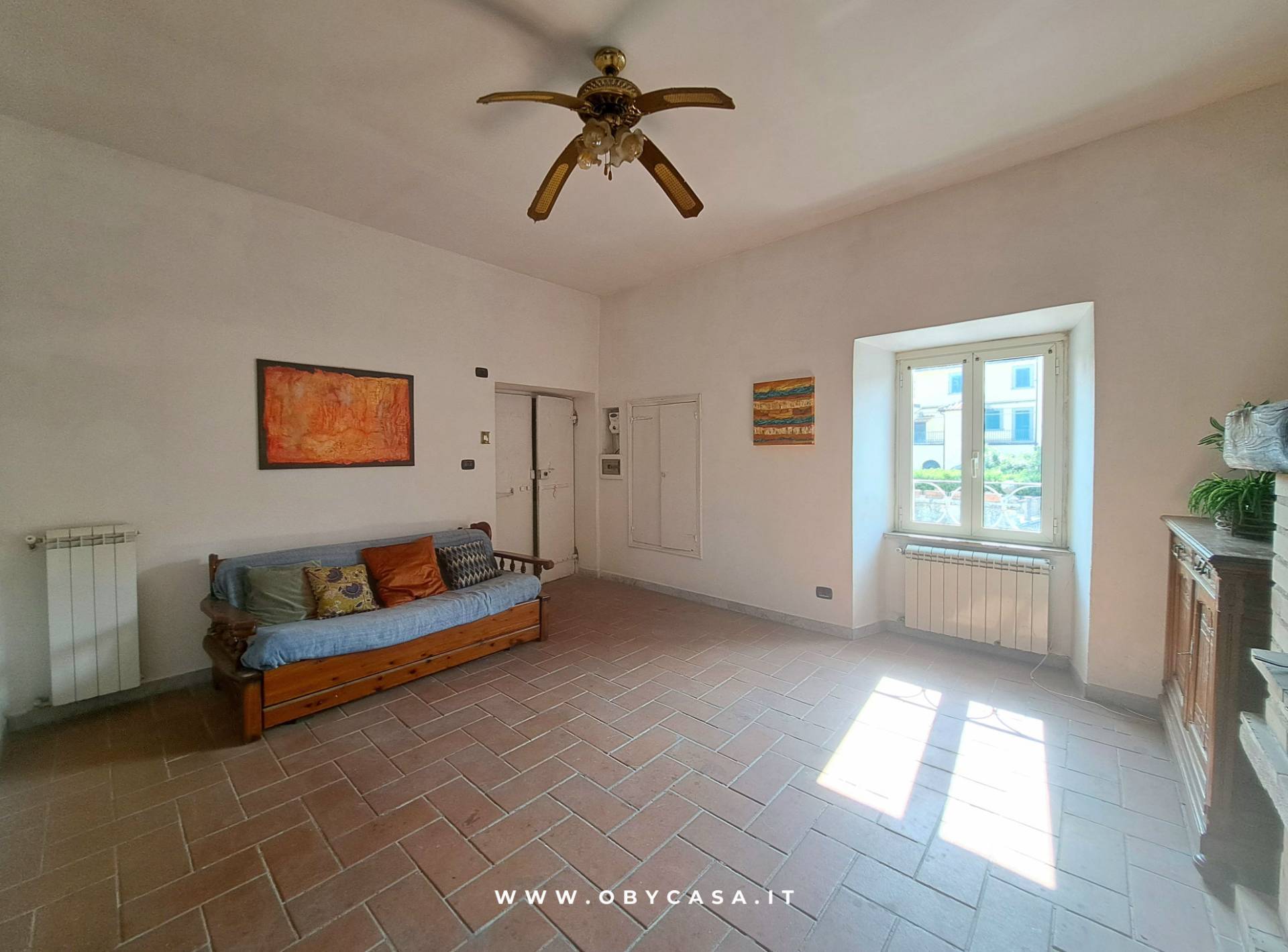 Lappartamento, ristrutturato nel 2004 conservando il carattere originario dellimmobile, si compone di soggiorno con camino, cucina abitabile, camera matrimoniale e bagno oltre ad un balconcino, vano tecnico esterno ed una terrazza di mq 42 con accesso dal terzo piano e con una vista mozzafiato sul paese e sul verde.
