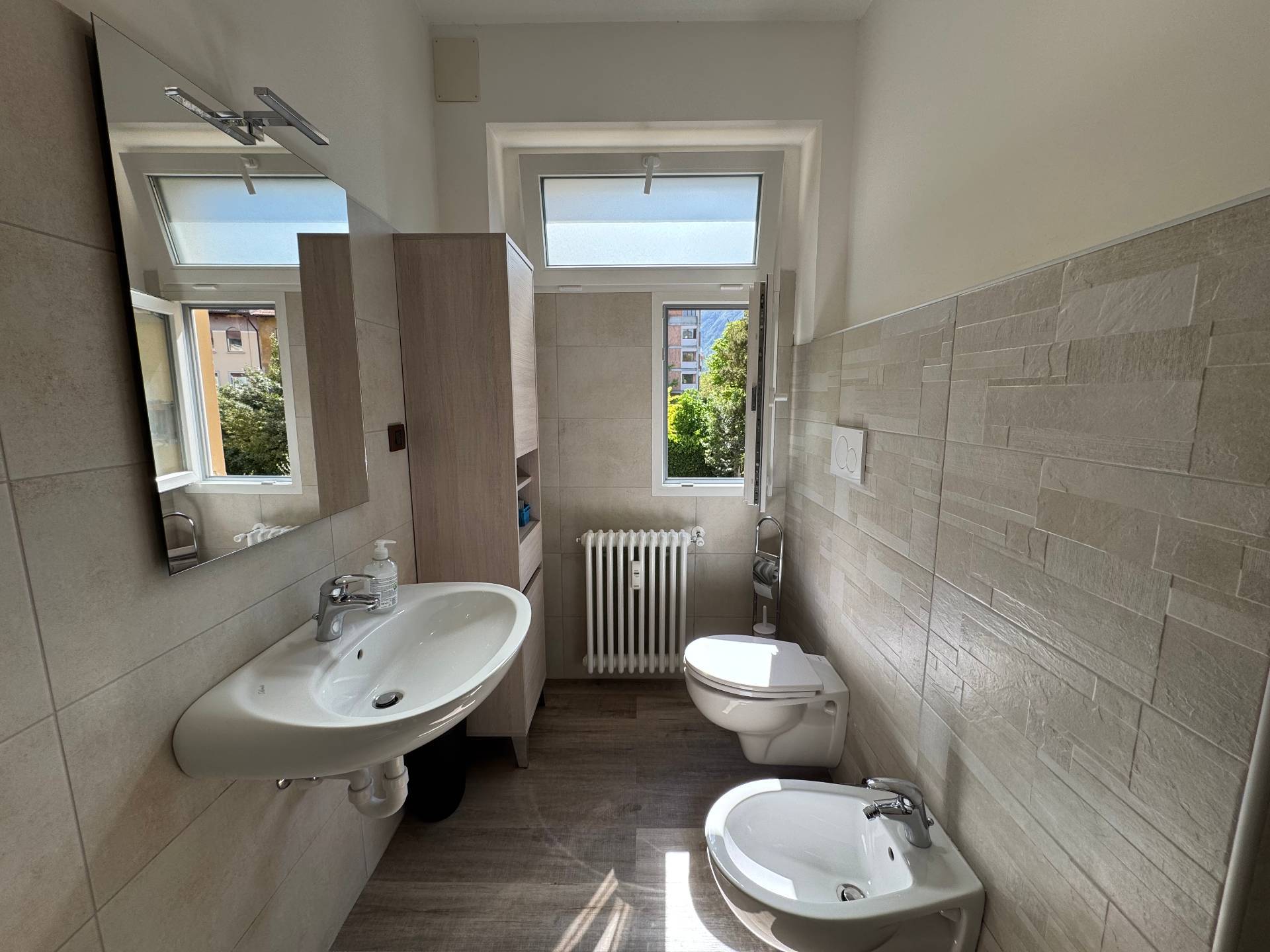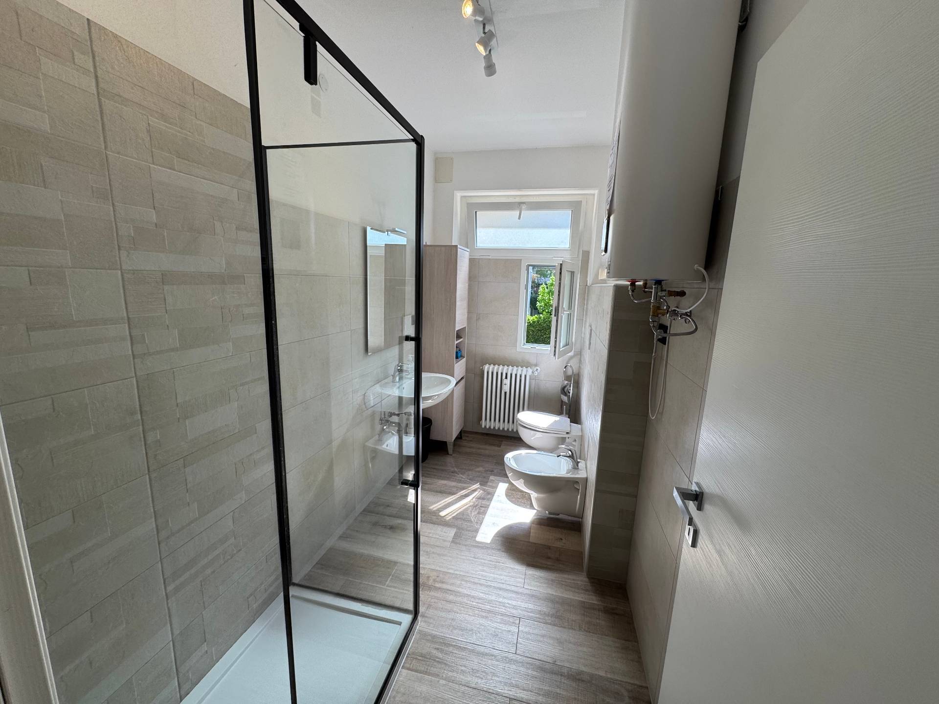 Il bagno finestrato, si distingue per le finiture curate e il design moderno.