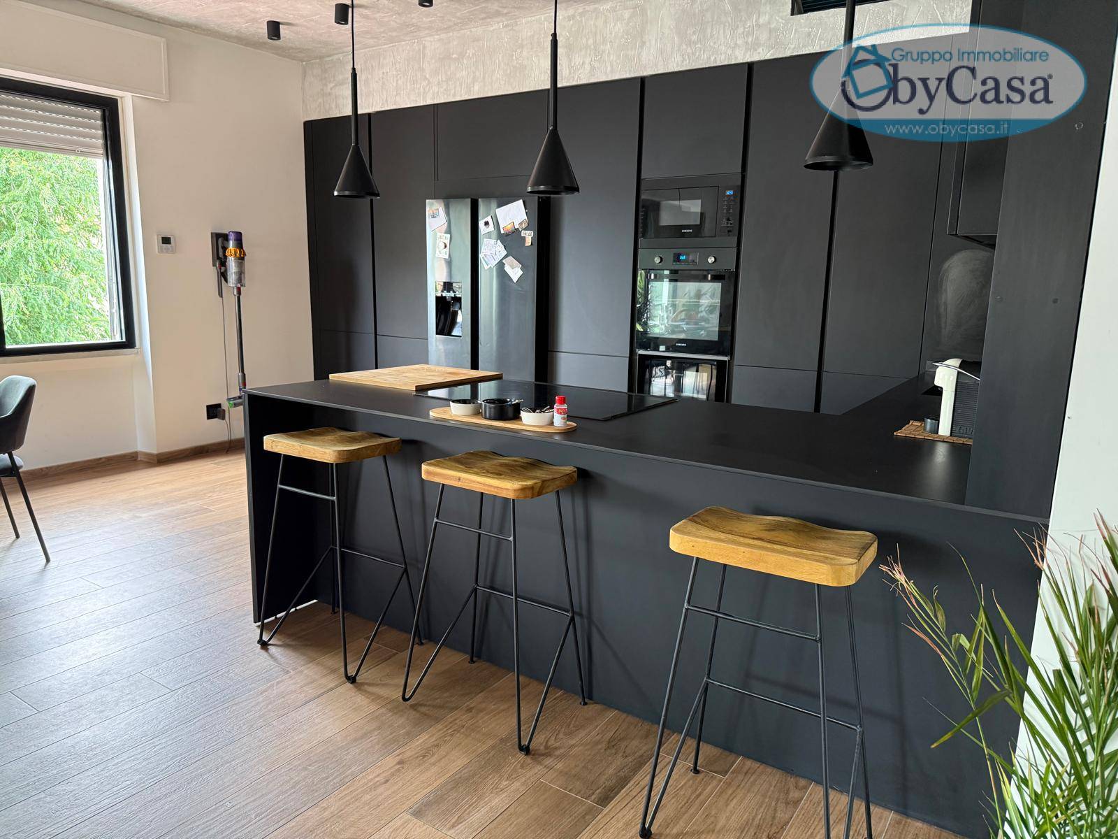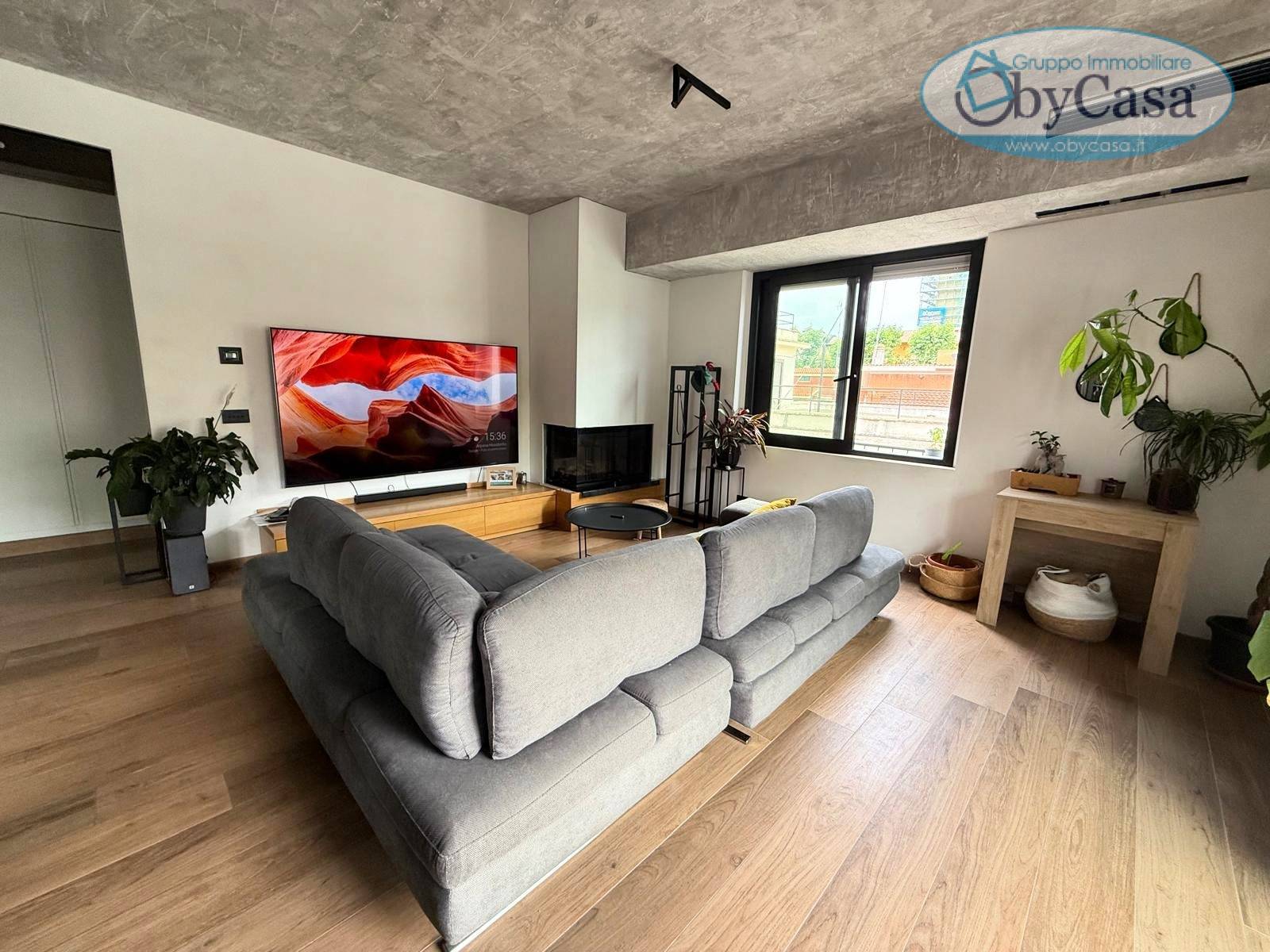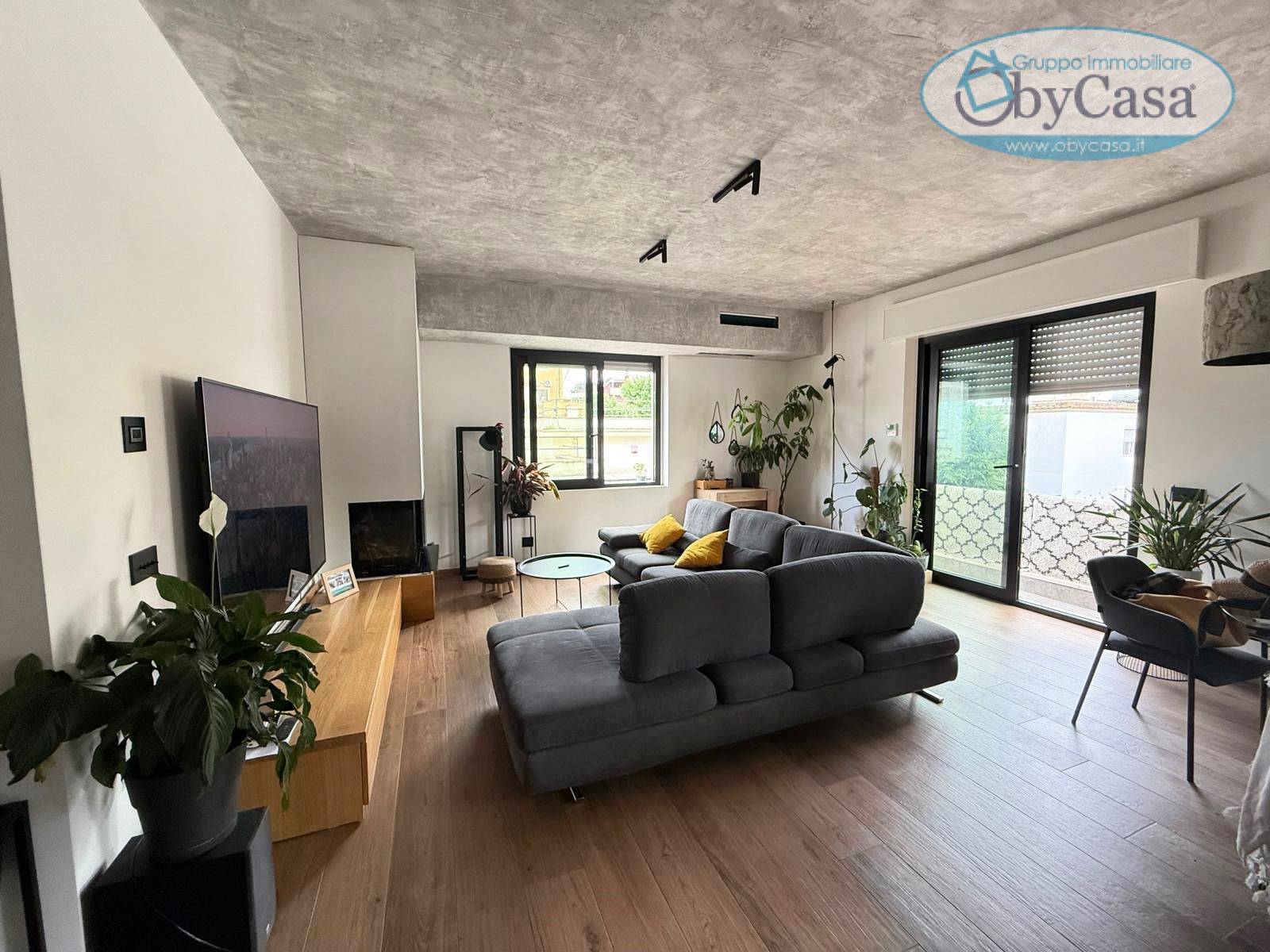 APPARTAMENTO PRESTIGIOSO VIA FIUME LADISPOLI La Obycasa Marina di San Nicola propone in vendita esclusiva, appartamento al piano primo di 150 mq completamente ristrutturato con materiali di prima scelta, al centro di Ladispoli, a due passi dal ***.*******.** proprieta' si sviluppa su tutto il piano ed e' composta da ingresso ampio e ben illuminato con illuminazione a Led sui gradini, armadi a muro e scarpiere, zona living "open space" con cucina a vista con isola centrale e camino,soffitto effetto cemento e condizionatori ***.*******.** ampie camere da letto con doppie finestre e striscia a Led contorno soffitto, cabina armadio e ***.*******.** bagni di cui uno con vasca idromassaggio doppia e ***.*******.** al pavimento e infissi in alluminio termico con tapparelle in ***.*******.** la proprieta' due balconi.