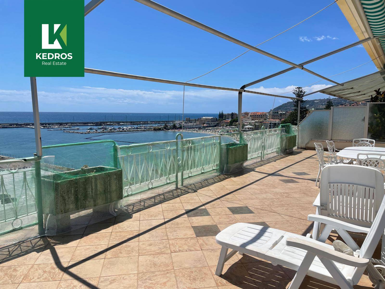 Su due lati una terrazza di cinquanta metri quadrati uno spazio ottimale per aperitivi e cene all'aperto sia per la famiglia che con gli amici, da cui si pu contemplare il mare in tutta la sua bellezza.