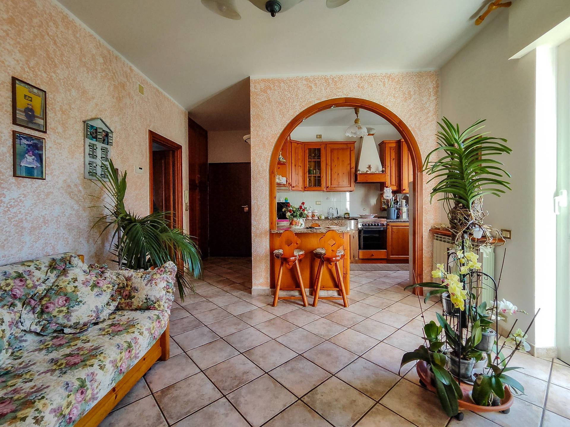L'alloggio, con riscaldamento termoautonomo, composto di ingresso, soggiorno con cucina a vista, due camere, bagno, ampio rispostiglio e due balconi.