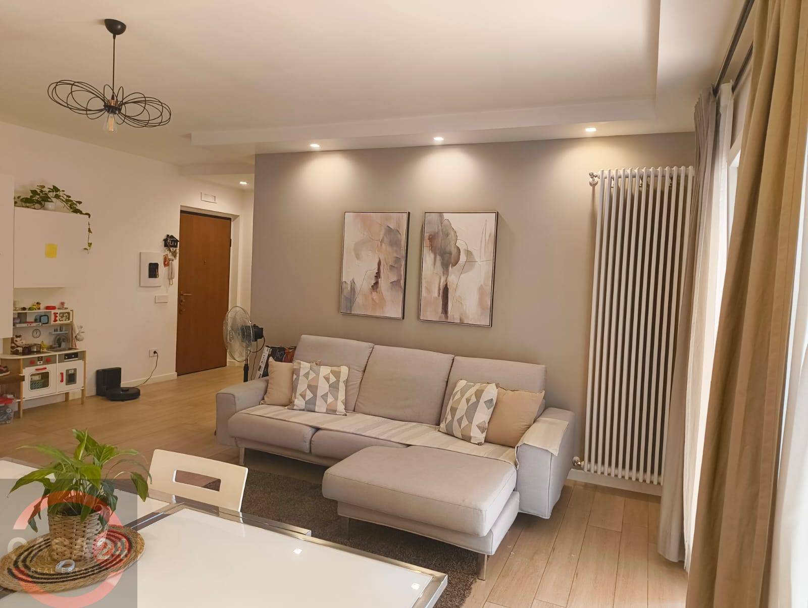 Al suo interno, troviamo un ampio soggiorno con cucina a vista, tre camere da letto e due bagni, entrambi finestrati e dotati di impianto a radiatori o pannelli radianti alimentati a metano.