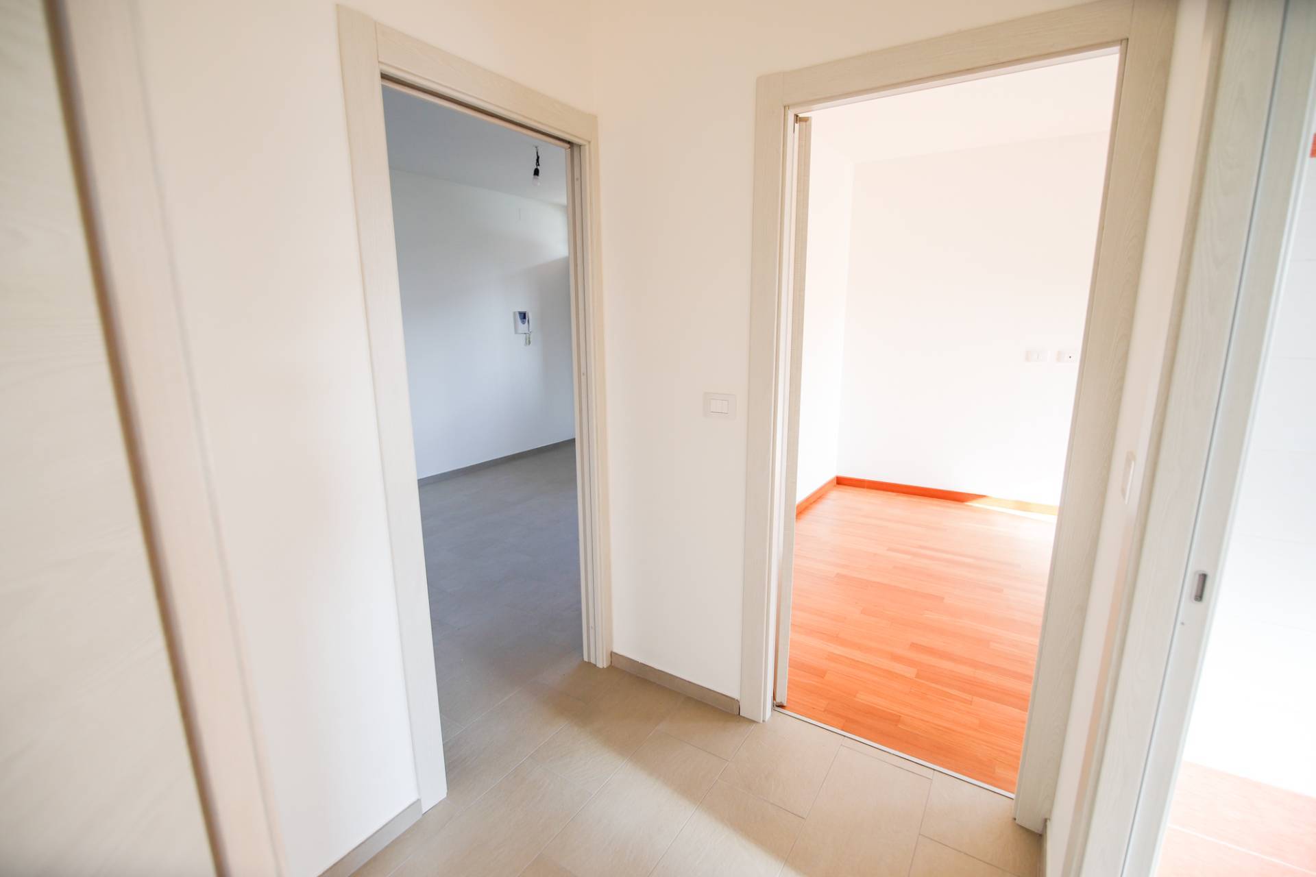 L'alloggio si compone di ingresso living open space con parete cottura (questo ambiente misura circa 40 m), disimpegno, due camere da letto e bagno.