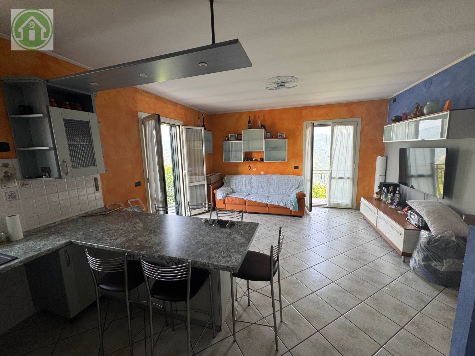 Ingresso soggiorno con angolo cottura con accesso su balcone panoramico.