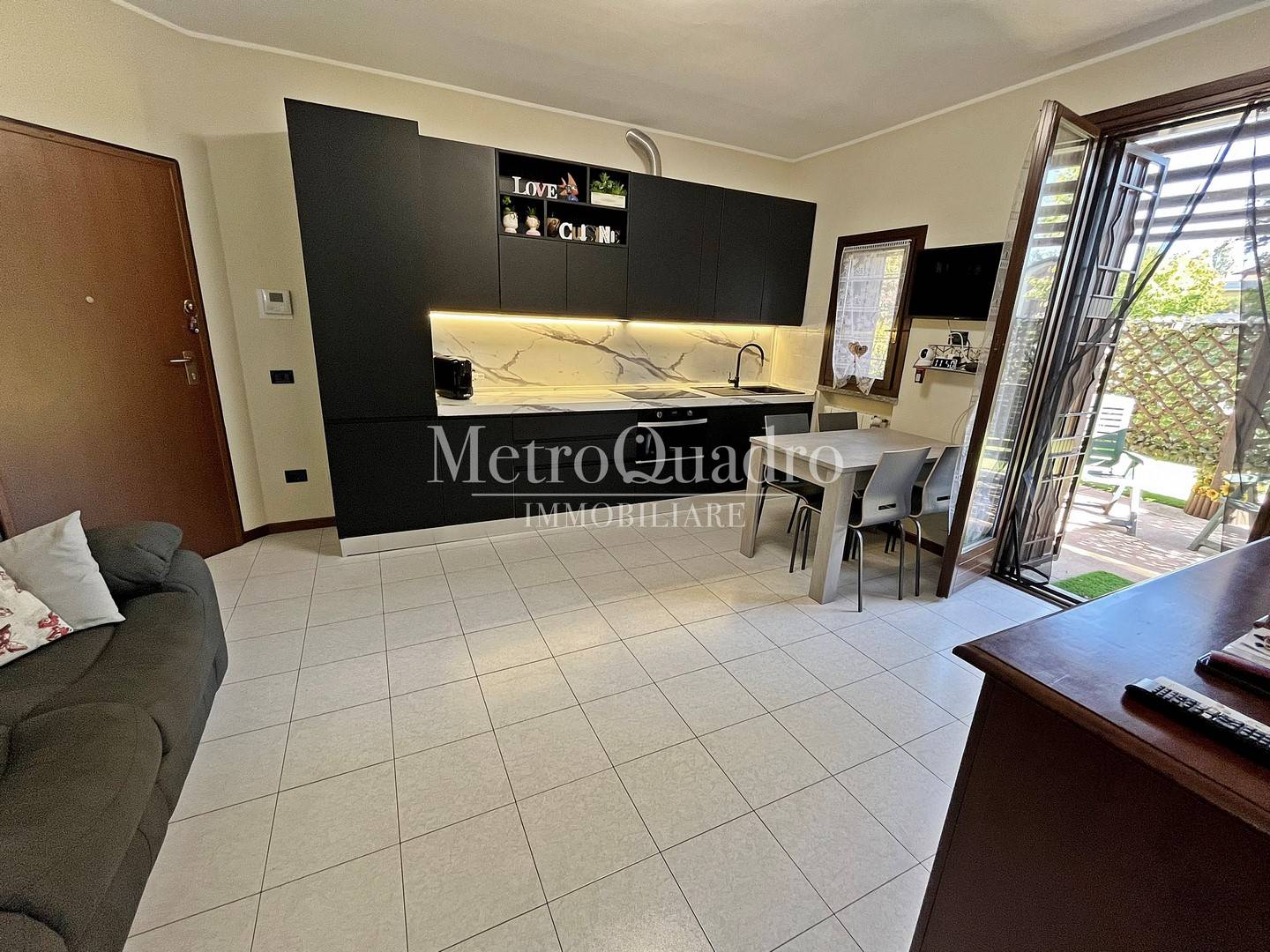 CORNATE D'ADDA - In zona residenziale a due passi dal centro paese, inserito nel complesso "I giardini dell'Adda", vendesi DUE LOCALI oltre taverna, giardino e box. SOLUZIONE UNICA NEL SUO GENERE!!. Attraverso il curato giardino condominiale si giunge alla palazzina e all'ingresso dell'appartamento che si apre su un funzionale locale openspace di soggiorno/cucina dotato di porta finestra per accedere alla curatissima area esterna in parte pavimentata e coperta da bers con tenda elettrica ed in parte in erba sintetica che permette di ridurre al minimo la manutenzione.