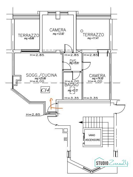 Entrando abbiamo l'ampio soggiorno con angolo cottura e accesso alla terrazza abitabile di 8.6mq , la camera singola, la camera matrimoniale con terrazza abitabile 11.4mq, e 1 bagno.