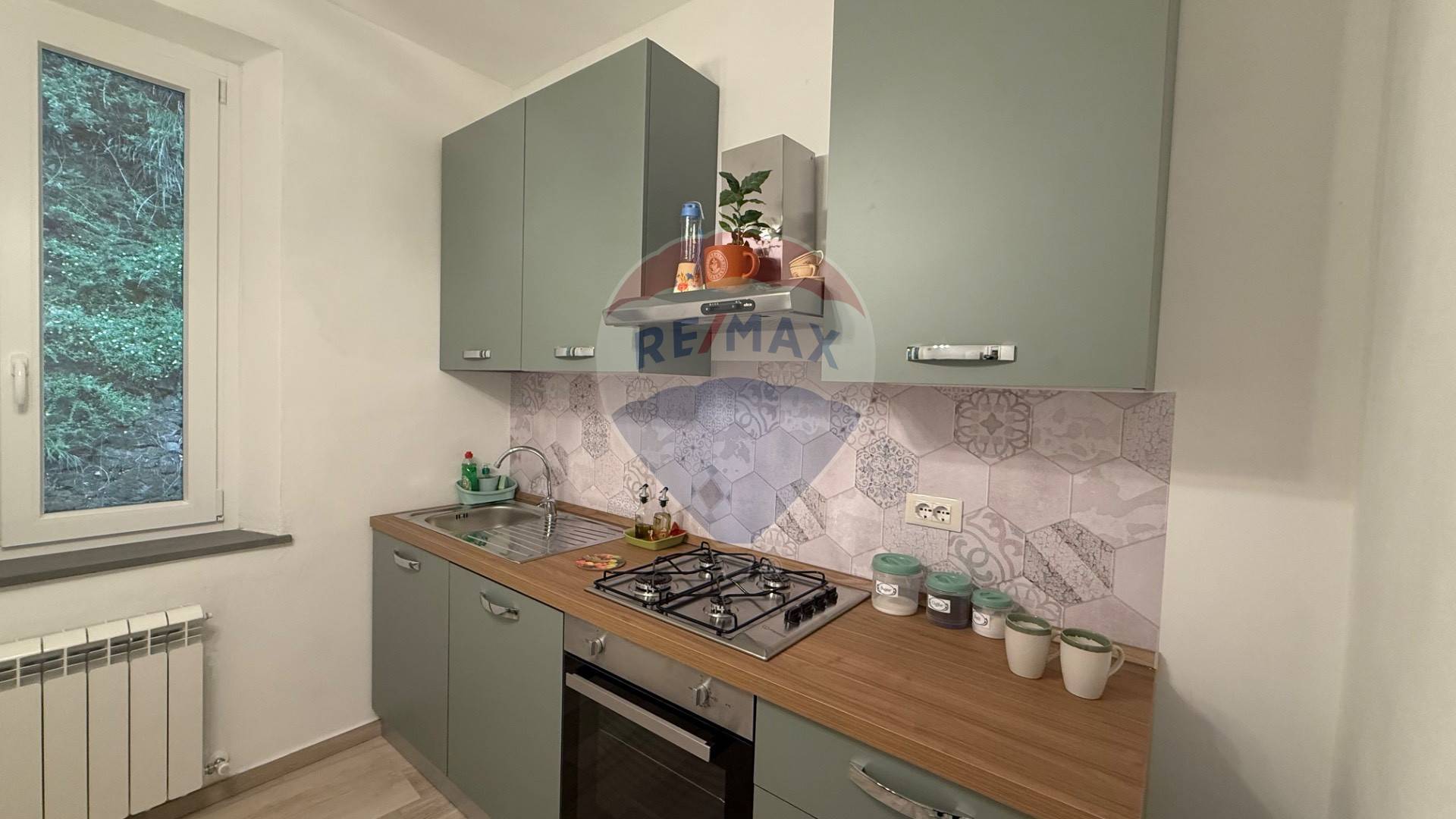 La cucina abitabile e completamente attrezzata; seguono un comodo ripostiglio, un disimpegno, un bagno moderno con doccia, una camera matrimoniale e una cameretta, perfetta come stanza per bambini, studio o ospiti.