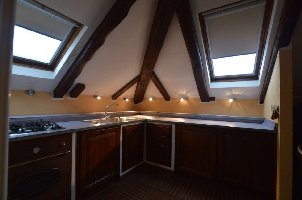 Molto caratteristico il soffitto di tutto l'appartamento che si presenta con l'orditura del tetto a vista, arredato con gusto.