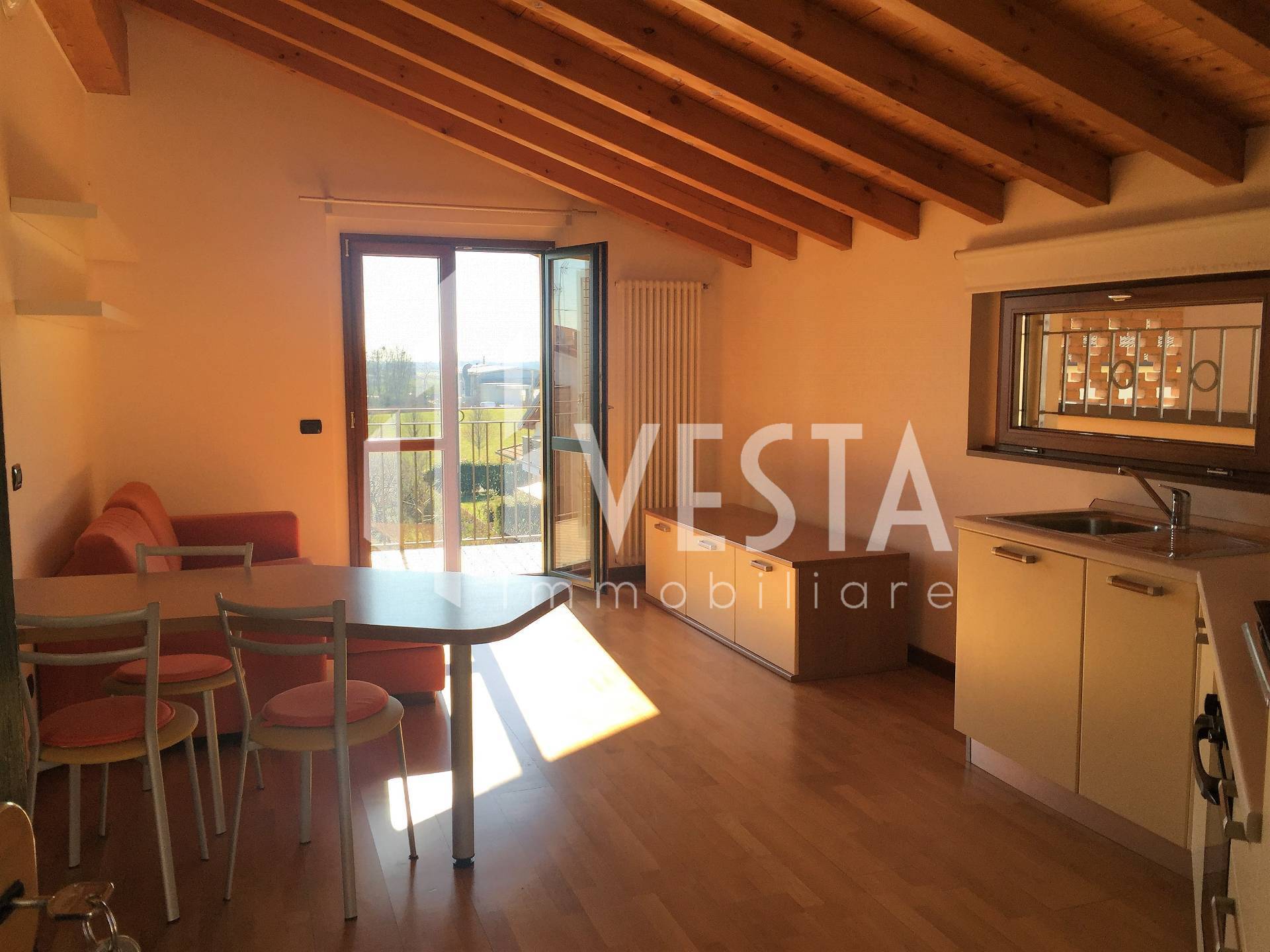 Bellusco: in prestigiosa palazzina, in zona residenziale e tranquilla vicino al centro paese proponiamo ottimo appartamento bilocale mansardato completamente arredato al piano secondo e ultimo, con travi in legno a vista ,suddiviso in: ingresso, soggiorno con cucina a vista, camera matrimoniale, bagno con doccia ed un balcone.