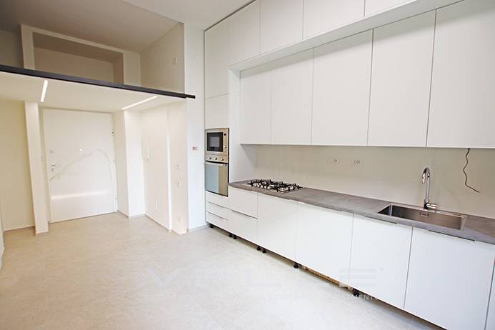L'immobile viene locato completo dell'arredo cucina e delle armadiature con possibilit di arredo completo (con canone di affitto da adeguare). La propriet si completa di ampia autorimessa doppia.