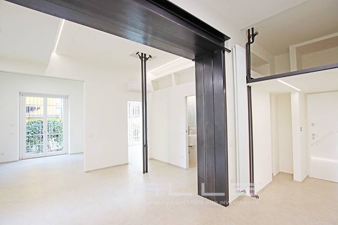 L'appartamento stato completamente ristrutturato a nuovo dotato di riscaldamento centralizzato contabilizzato, aria condizionata con pompa di calore, tapparelle elettriche, sistemi anti intrusione, pavimentazioni in moderno gres di grande formato, dettagli di design quali putrelle in ferro a vista, velette e controsoffittature con illuminazione diffusa.